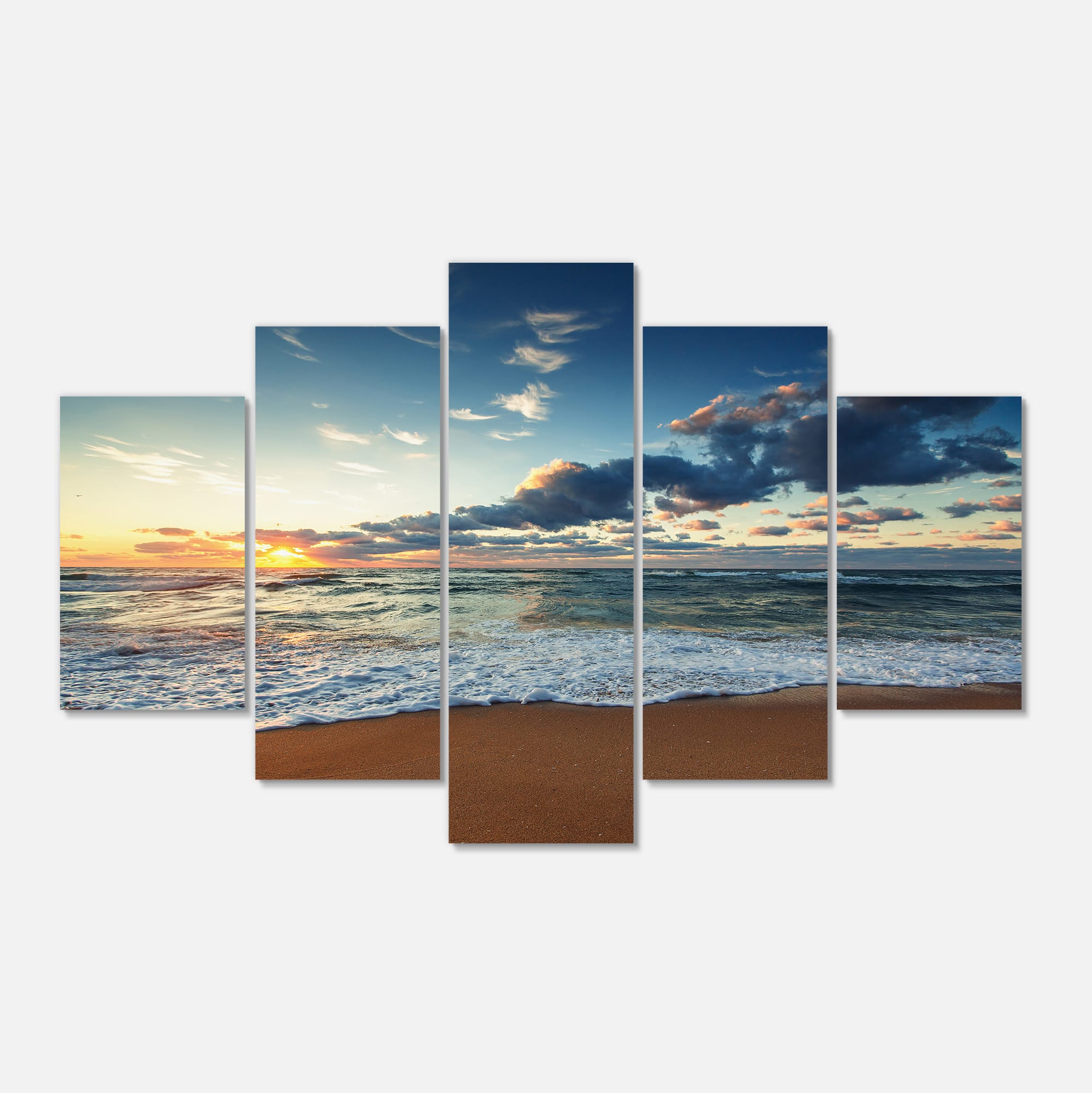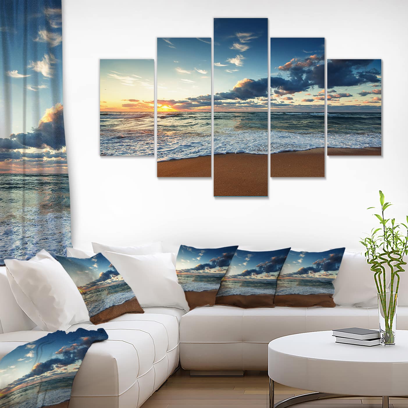 Designart - Sunrise and Glowing Waves in Ocean - Seascape Canvas Art Print