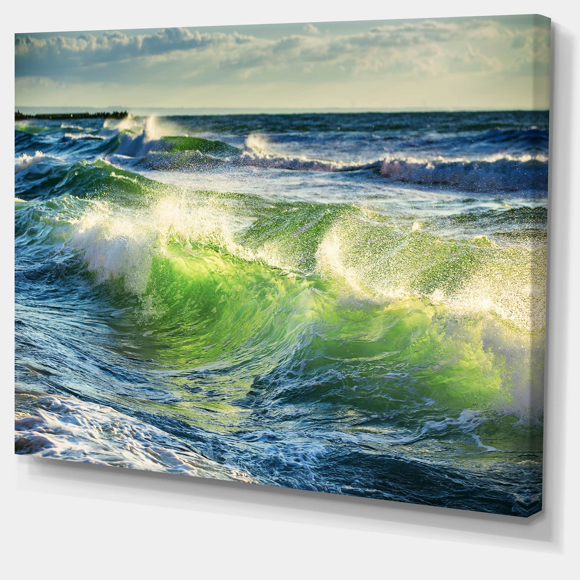 Designart - Sunrise and Shining Waves in Ocean - Beach Photo Canvas Print
