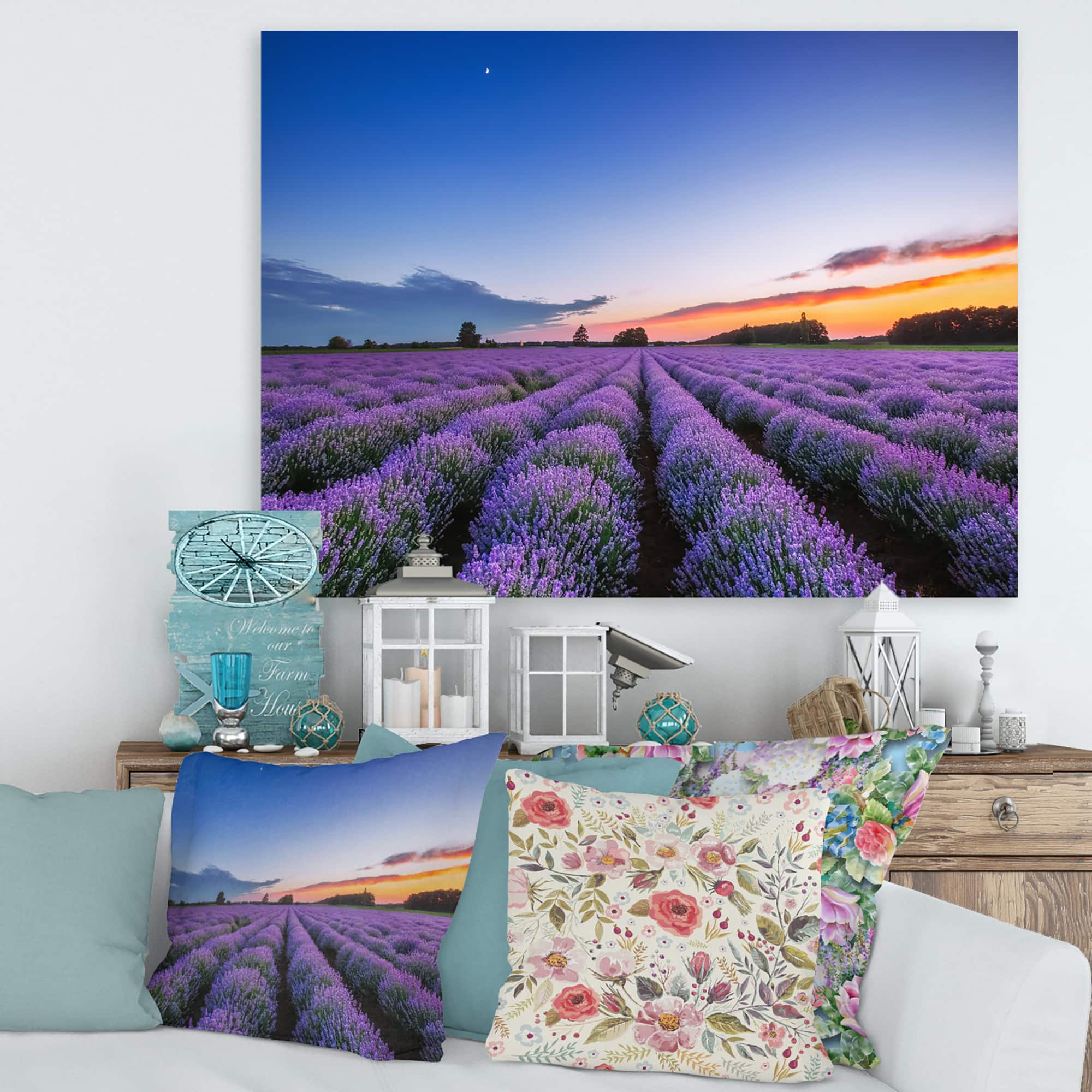Designart - Sunrise & Dramatic Clouds Over Lavender Field I - Farmhouse Canvas Wall Art Print