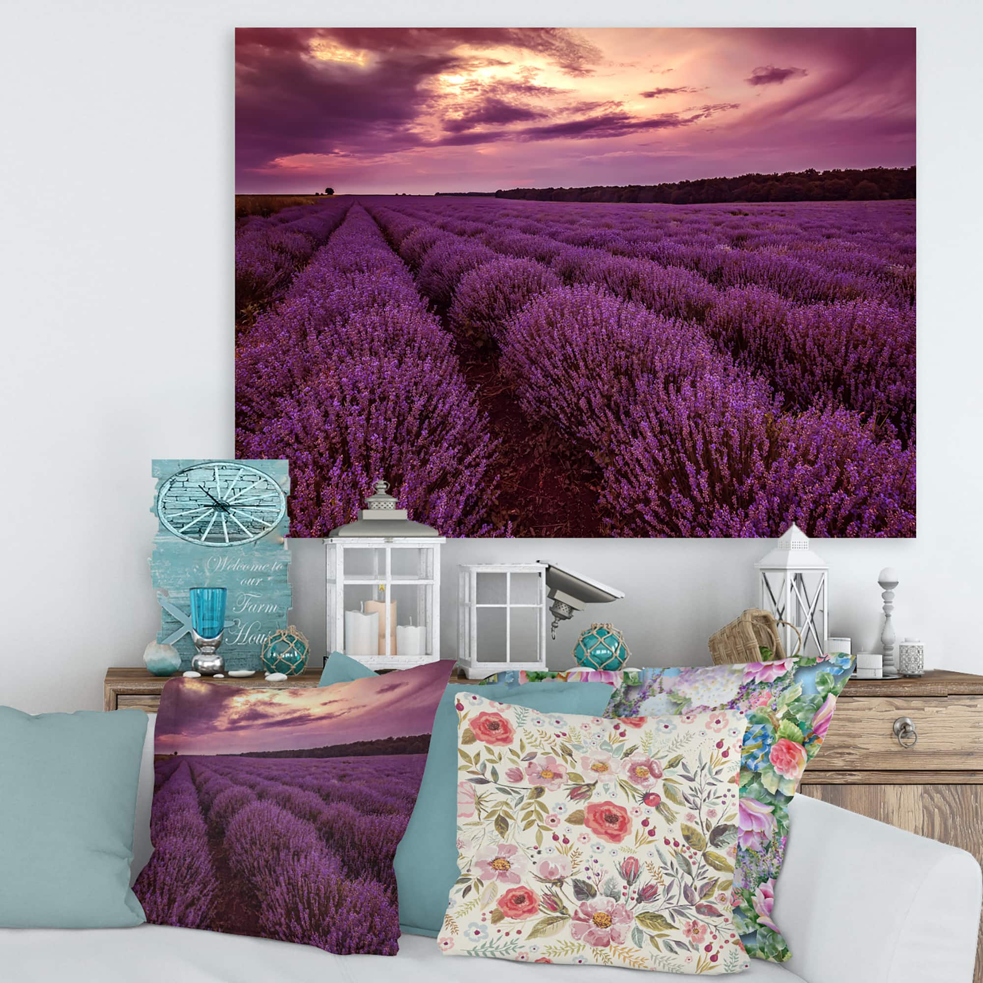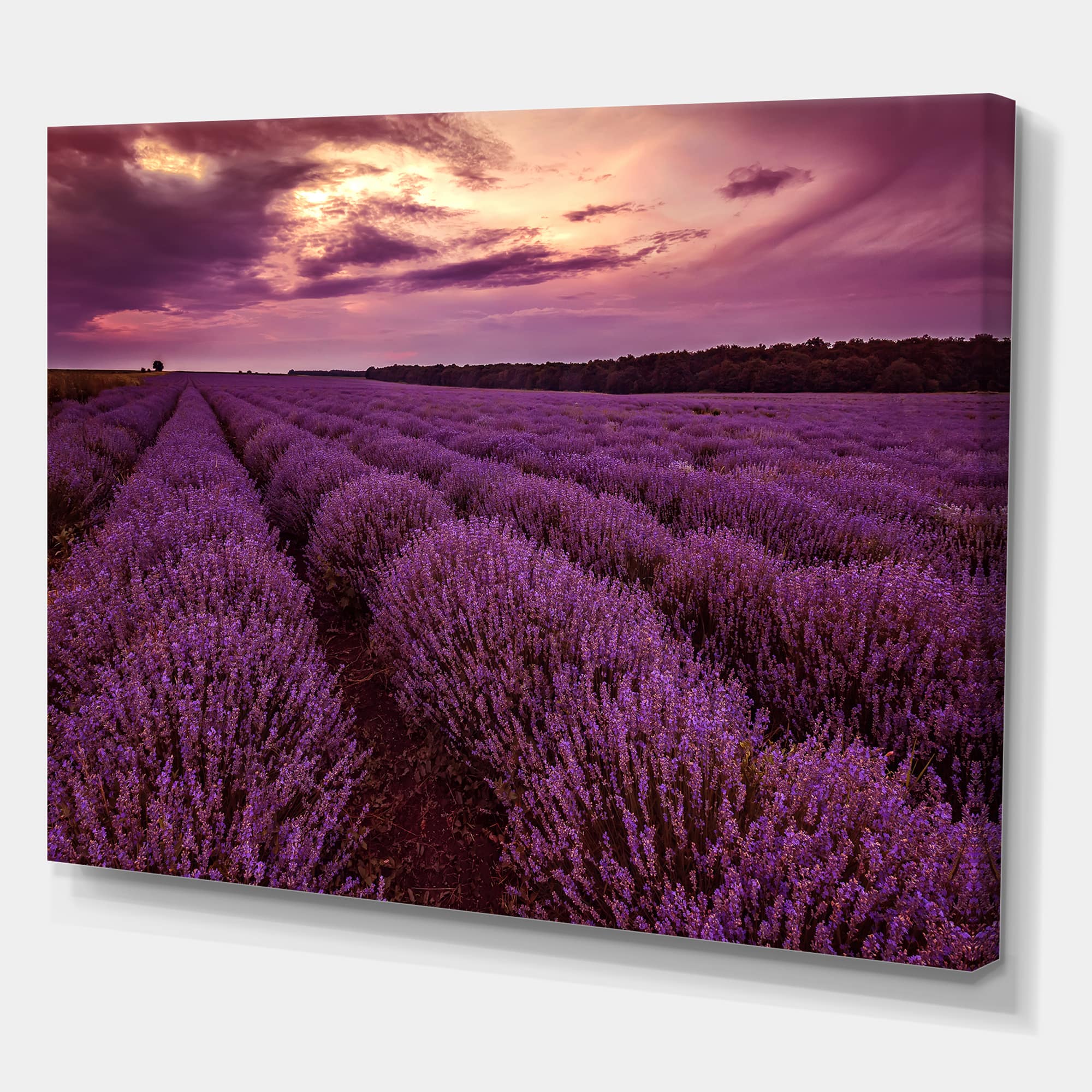 Designart - Sunrise & Dramatic Clouds Over Lavender Field III - Farmhouse Canvas Wall Art Print