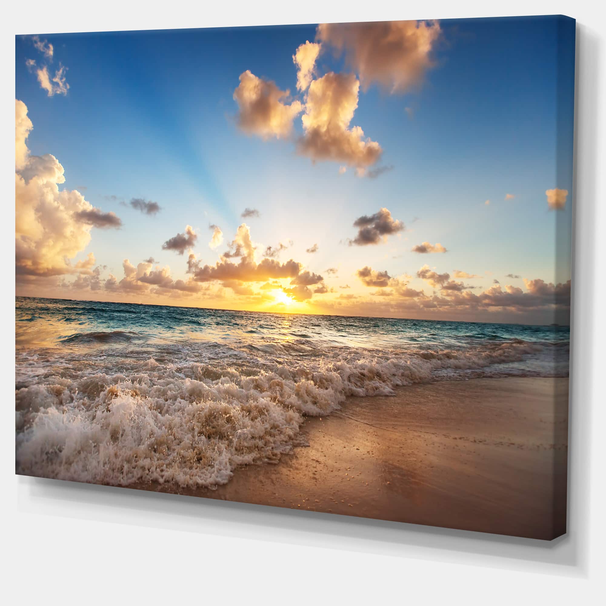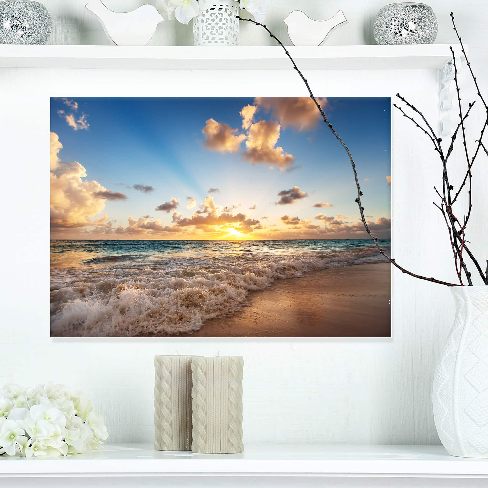 Designart - Sunrise on Beach of Caribbean Sea - Large Seashore Canvas Art Print