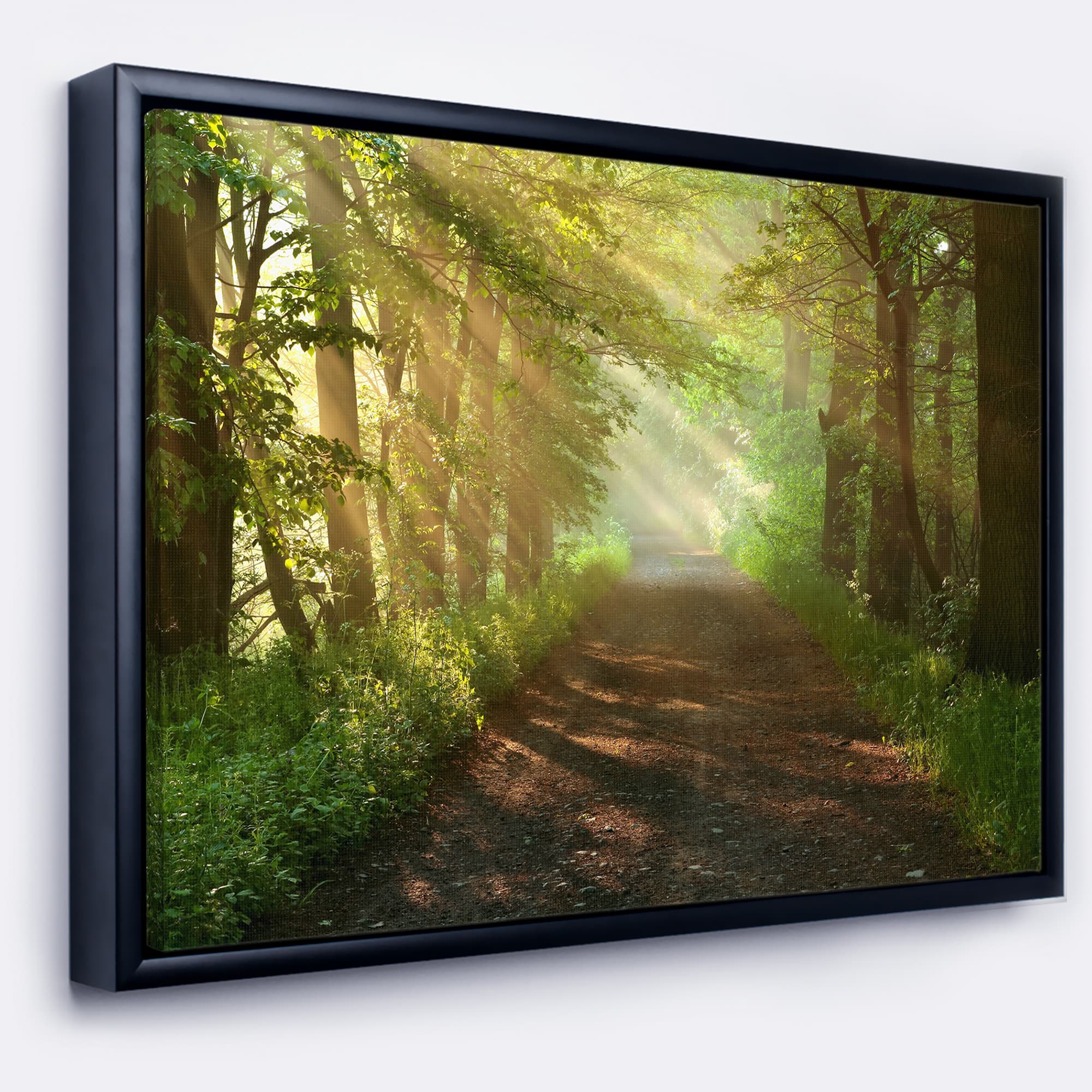 Designart - Suns Peeks into Forest - Landscape Photography Canvas Print in Black Frame
