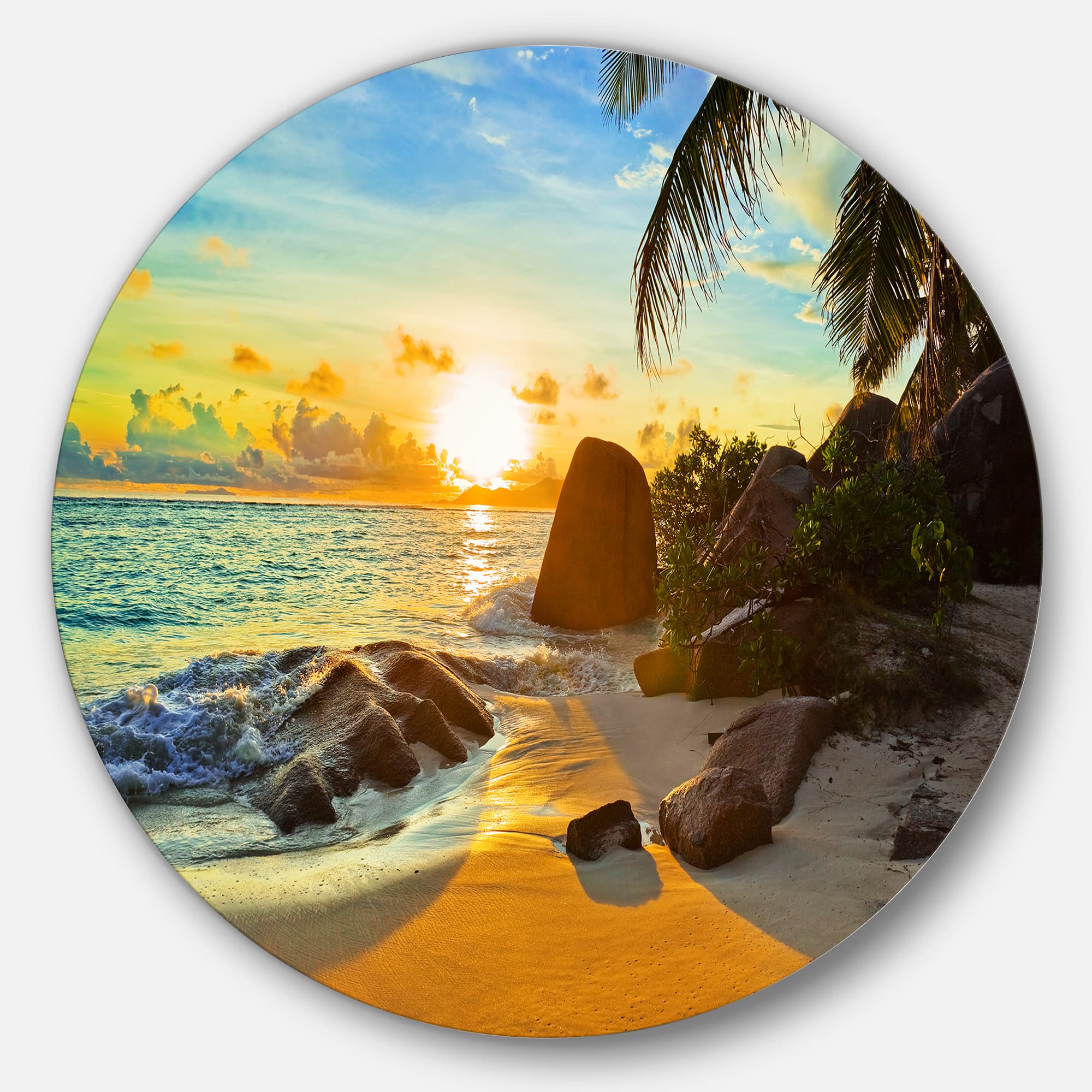 Designart - Sunset in Tropical Beach' Disc Landscape Photography Circle Metal Wall Art