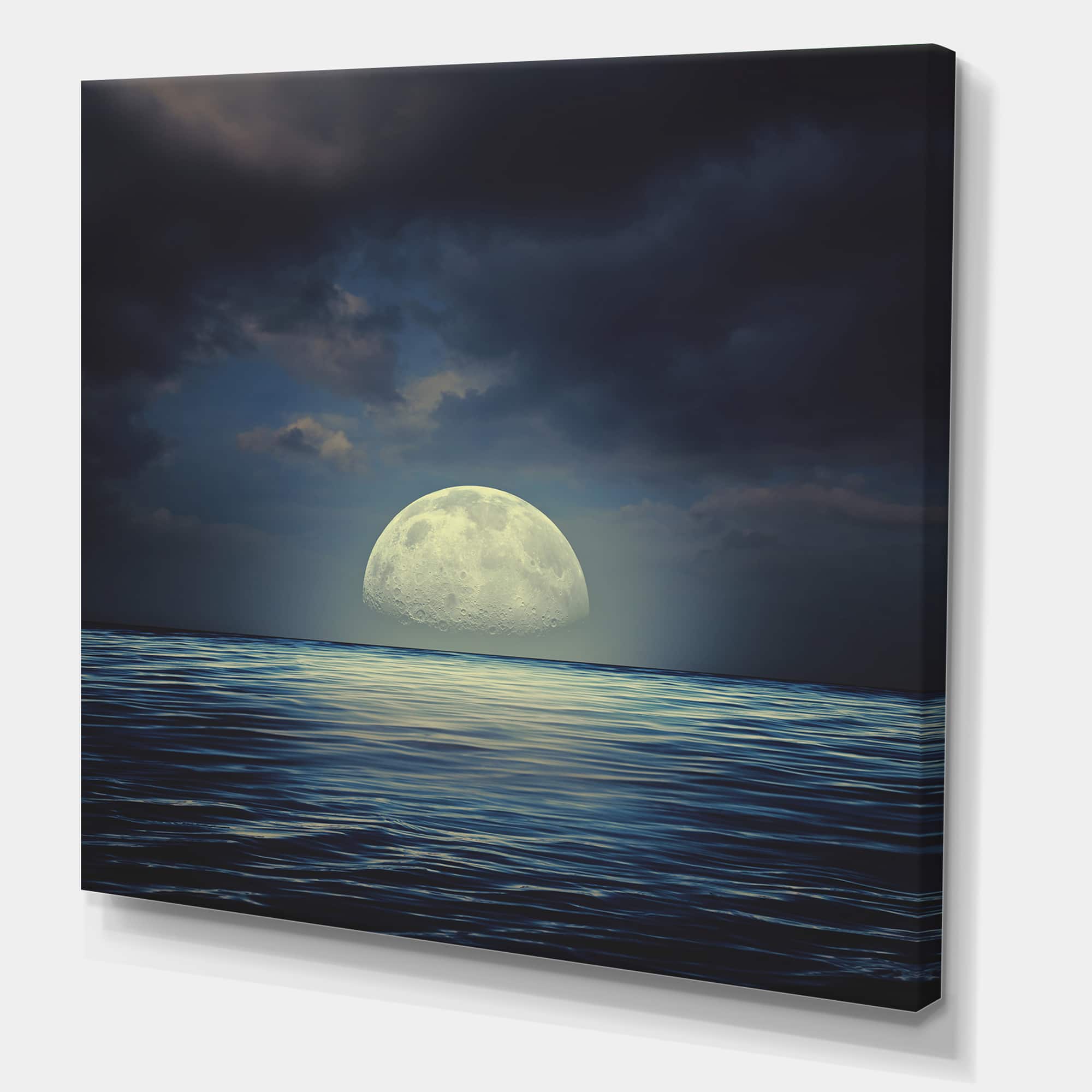 Designart - Super Moon Over The Sea II - Nautical & Coastal Canvas Wall Art Print