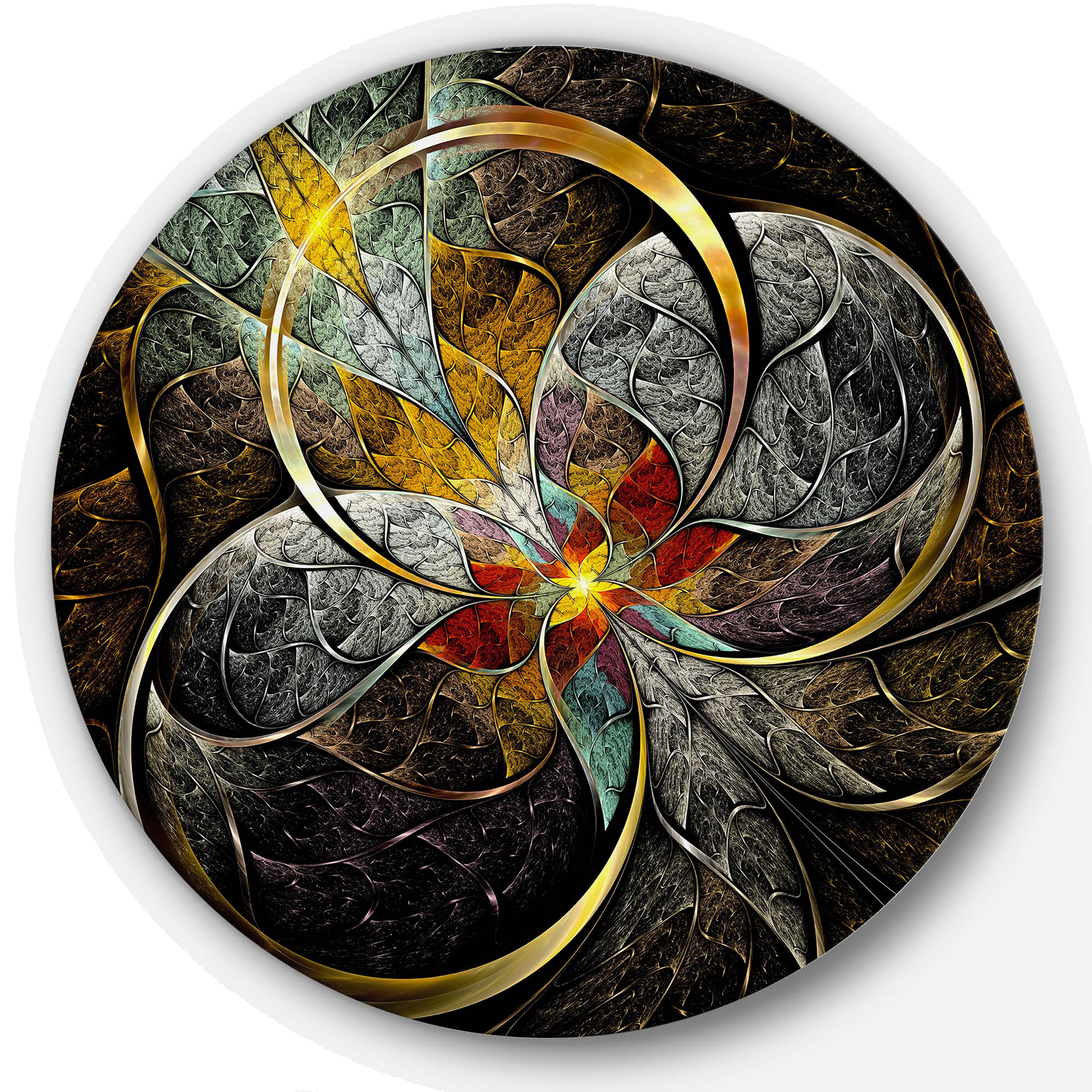 Designart - Symmetrical Brown Fractal Flowers' Disc Large Contemporary Circle Metal Wall Arts