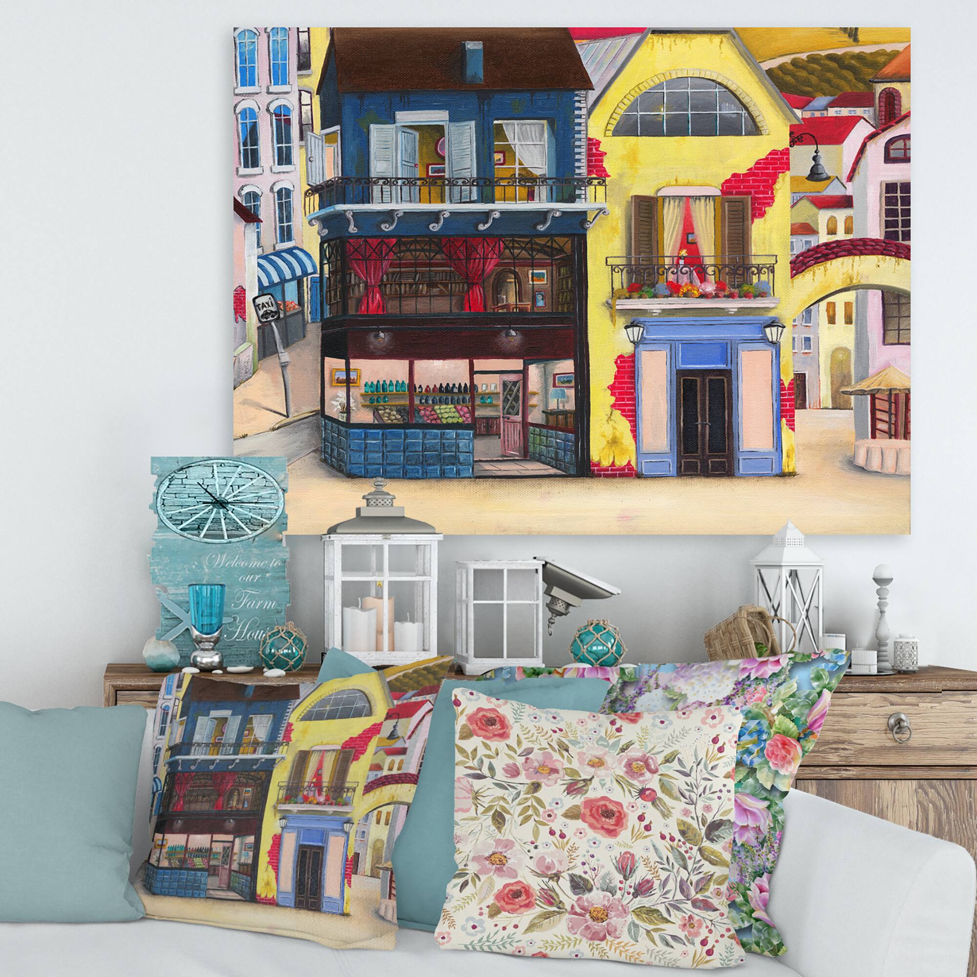 Designart - The Facade of The Buildings In A Cozy Streets - French Country Canvas Wall Art Print