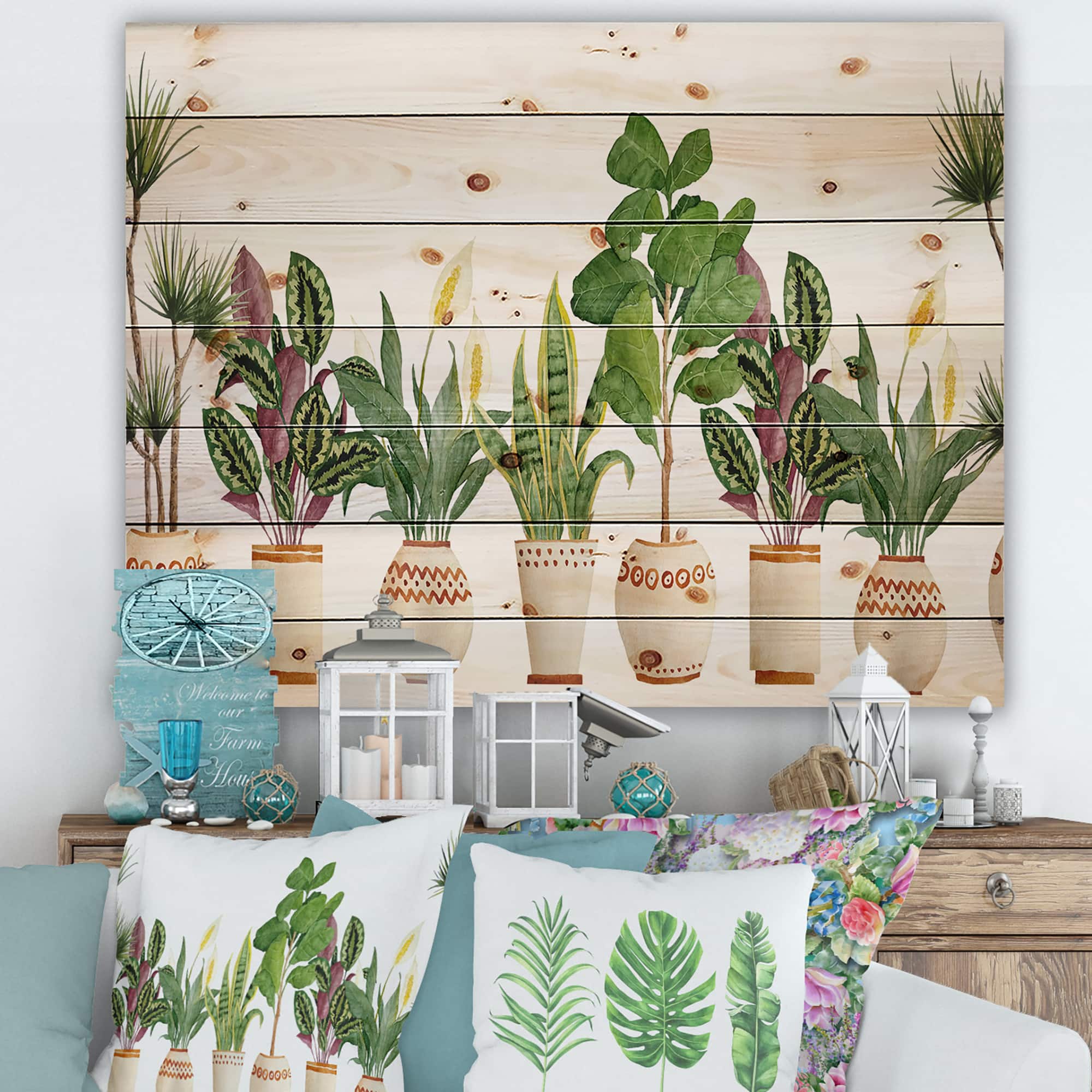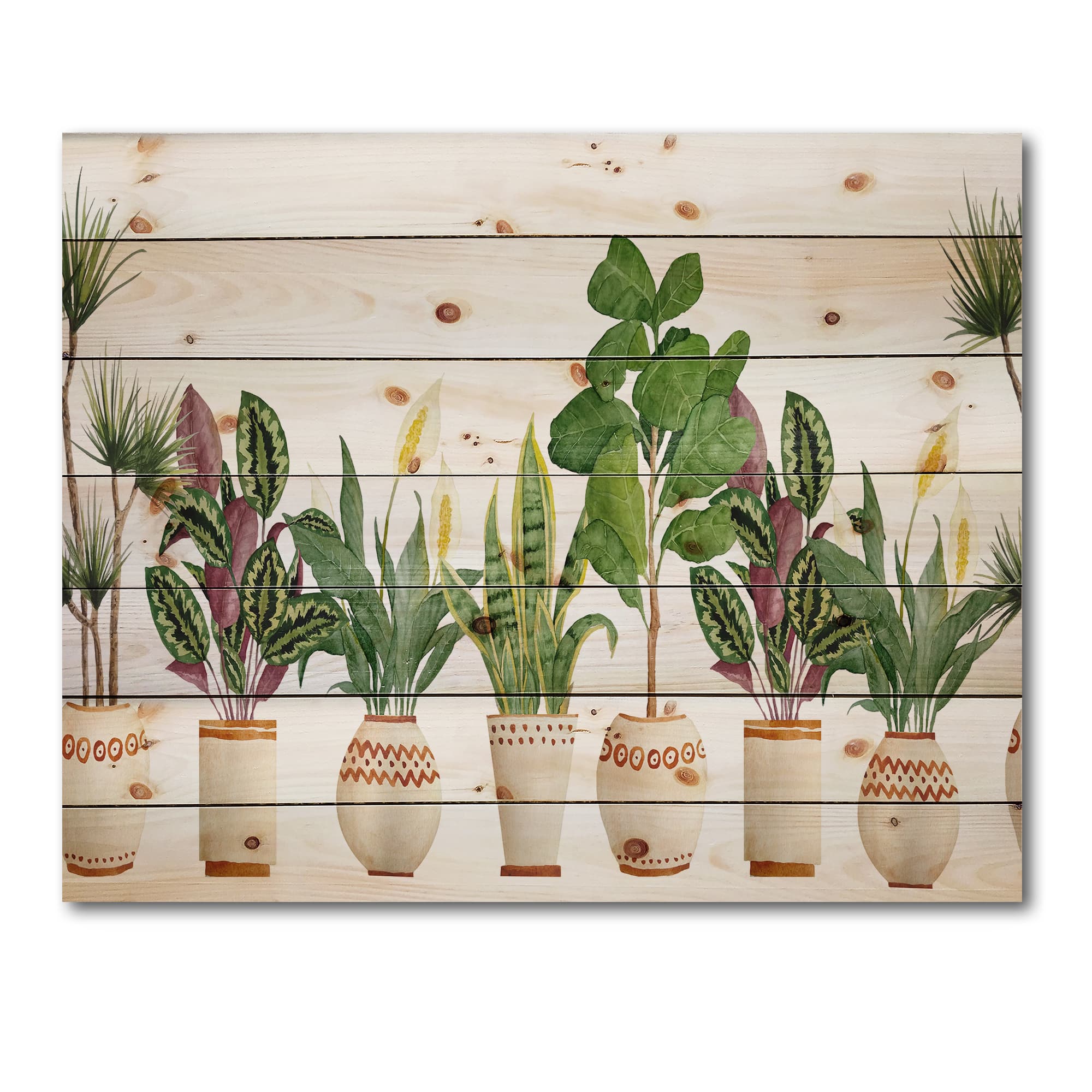 Designart - Trio of Houseplants Sanseviera Snake Plant - Farmhouse Print on Natural Pine Wood