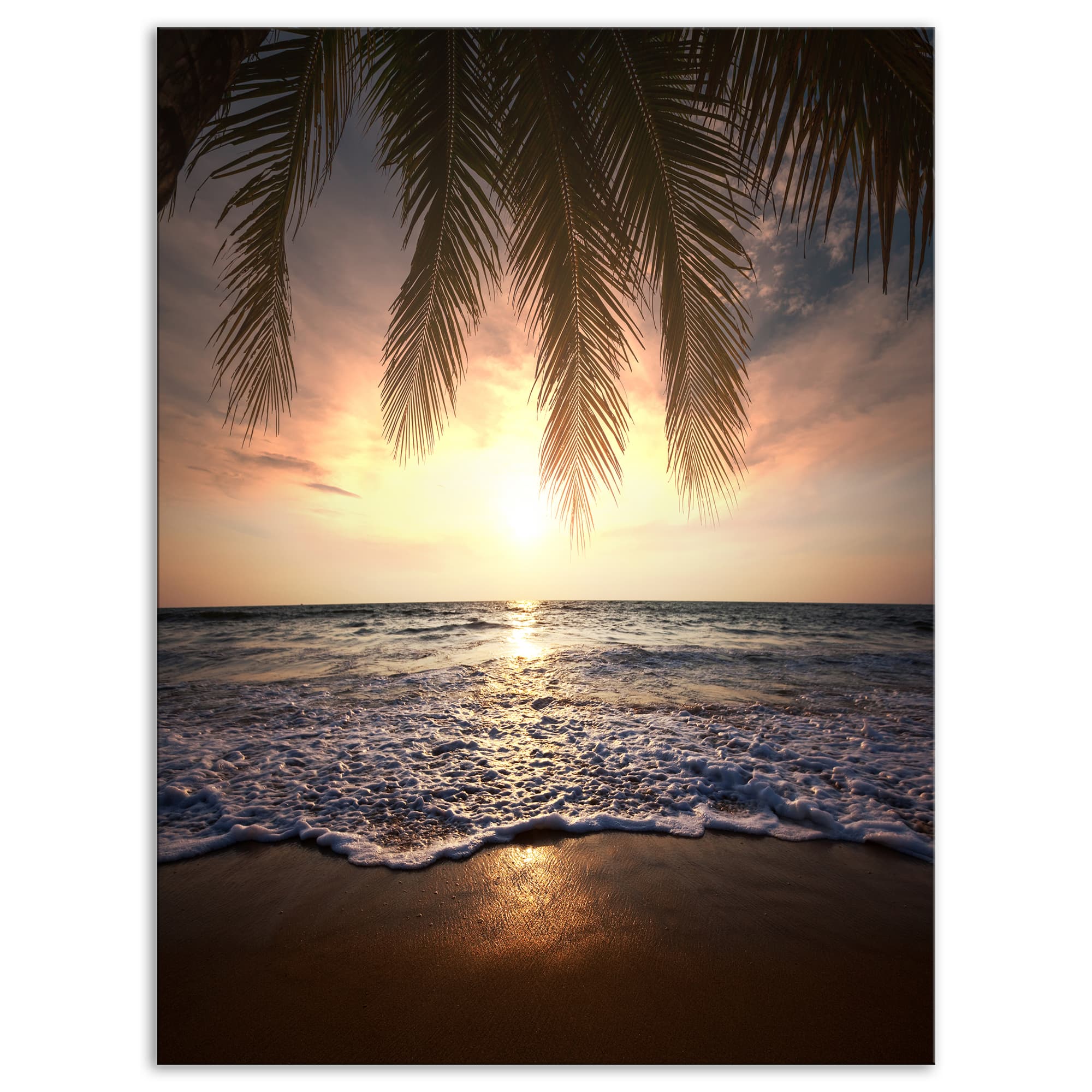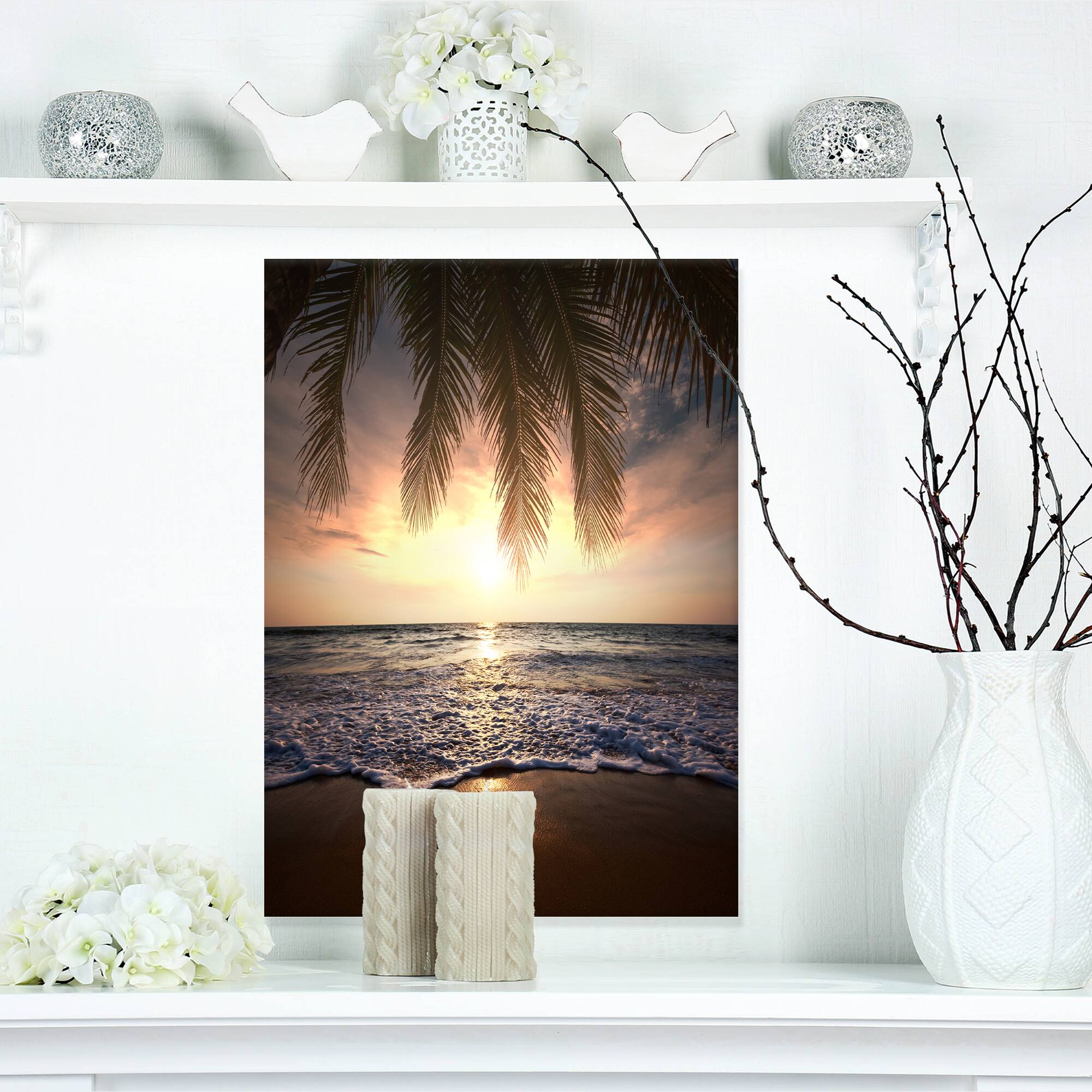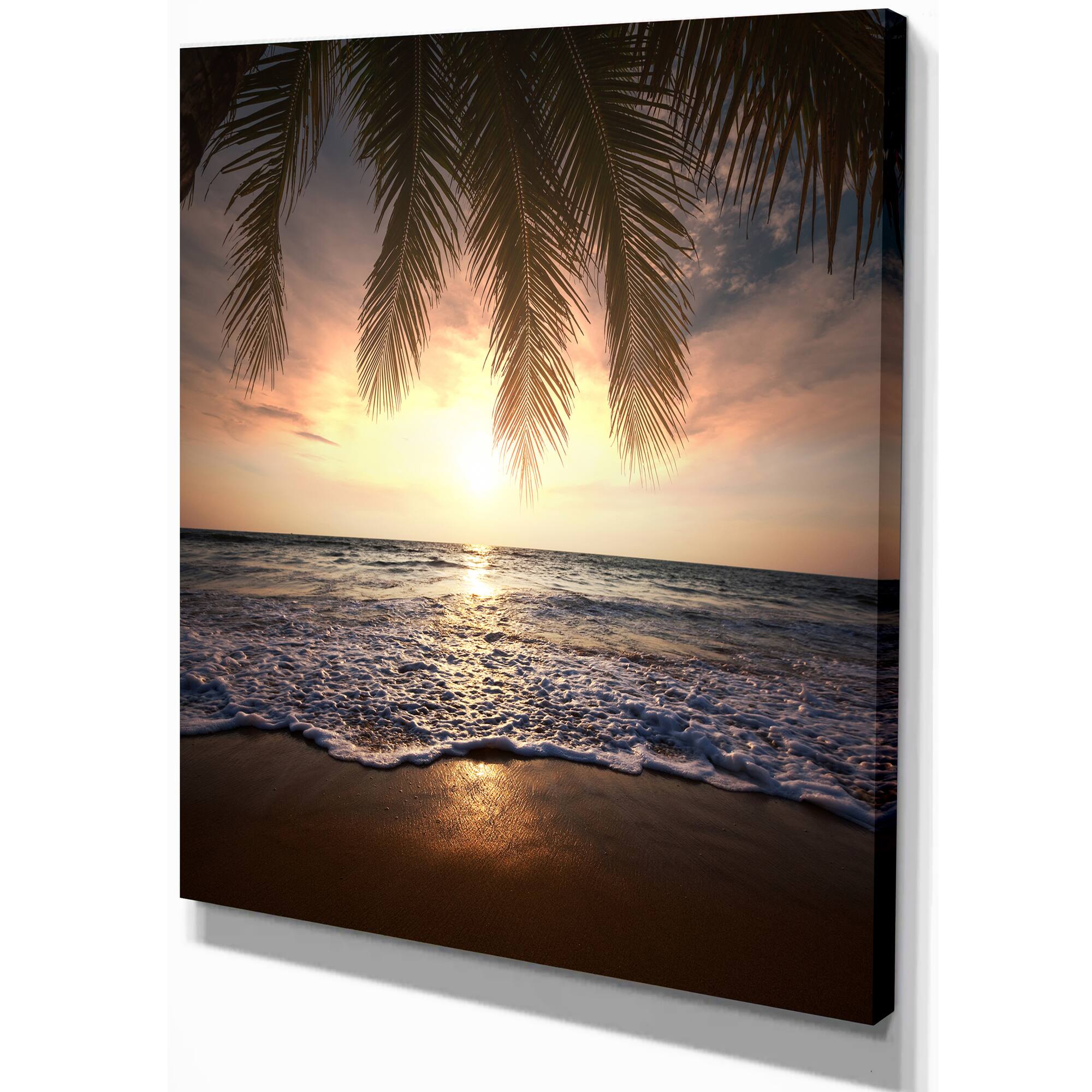 Designart - Tropical Beach with Palm Leaves - Seashore Canvas Art Print