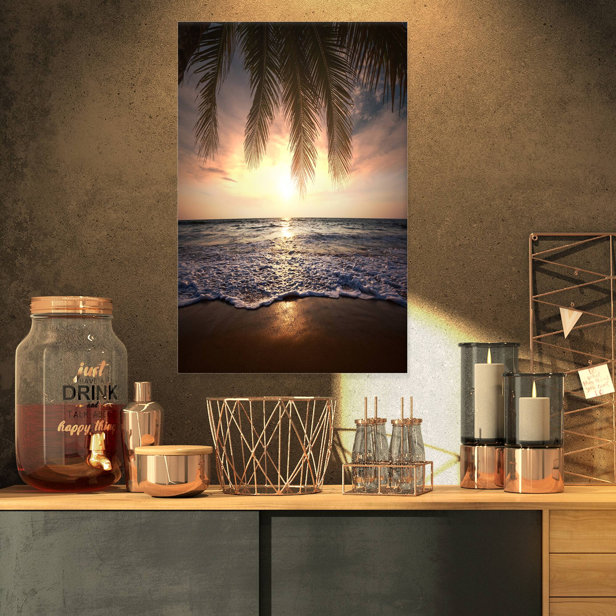 Designart - Tropical Beach with Palm Leaves - Seashore Canvas Art Print