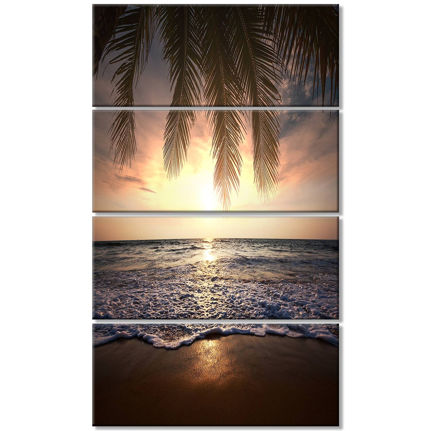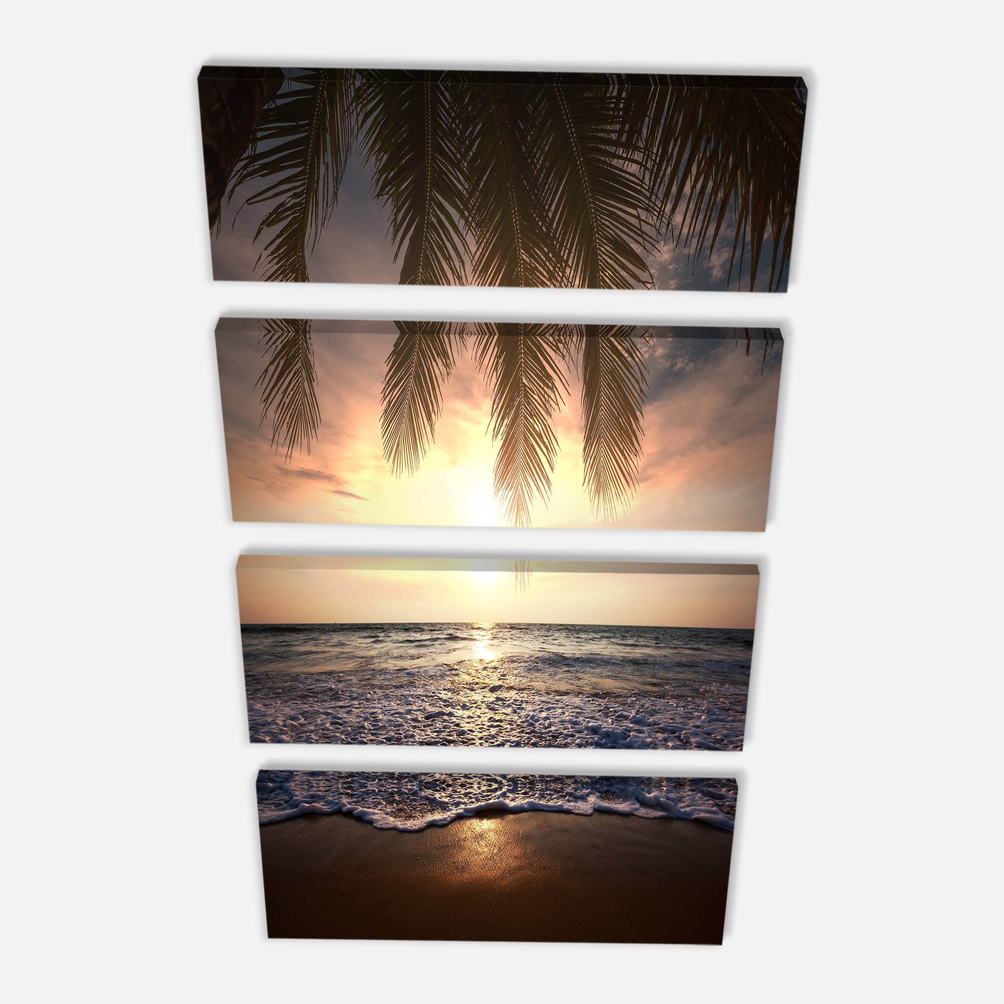 Designart - Tropical Beach with Palm Leaves - Seashore Canvas Art Print