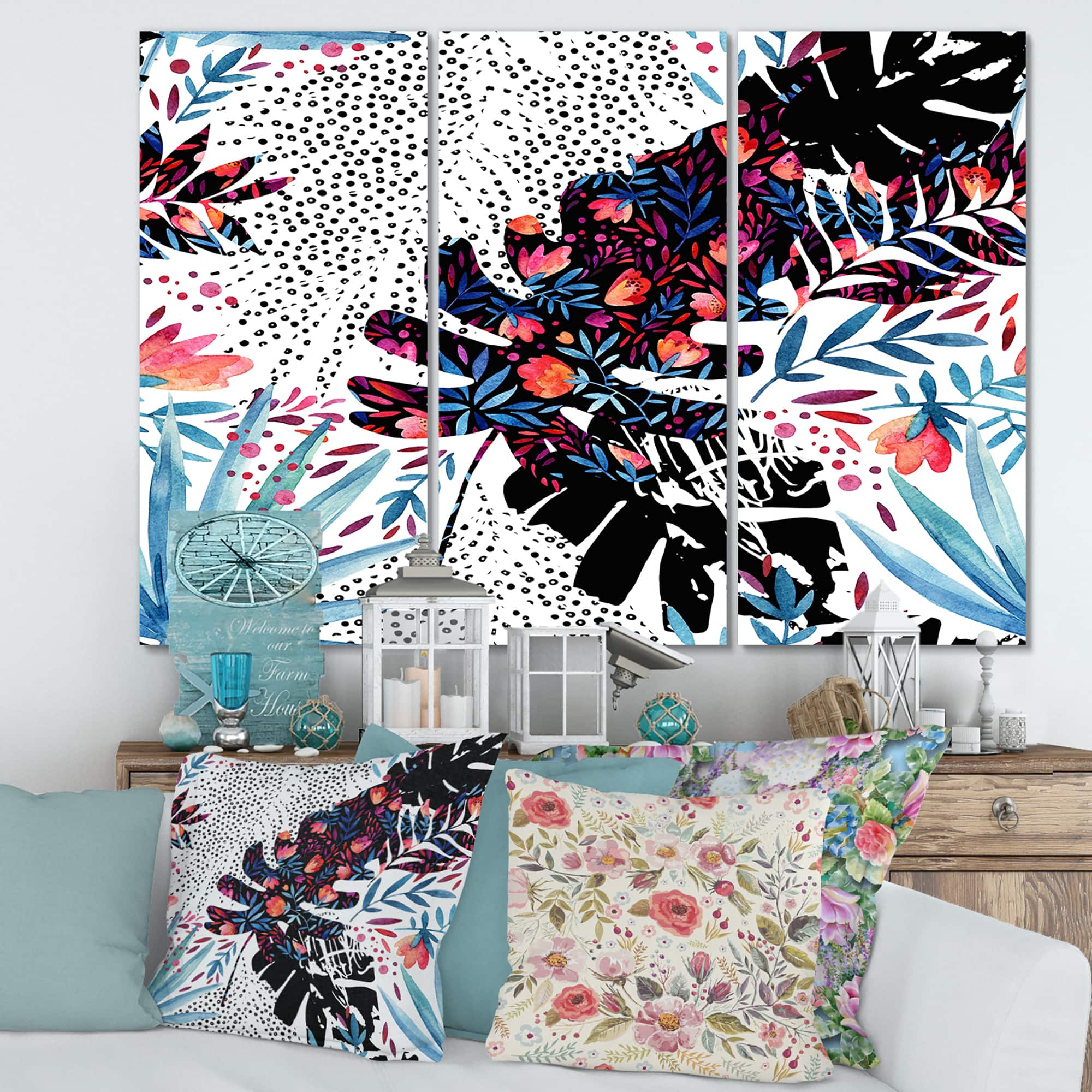 Designart - Tropical Floral Patchwork I - Tropical Canvas Wall Art Print