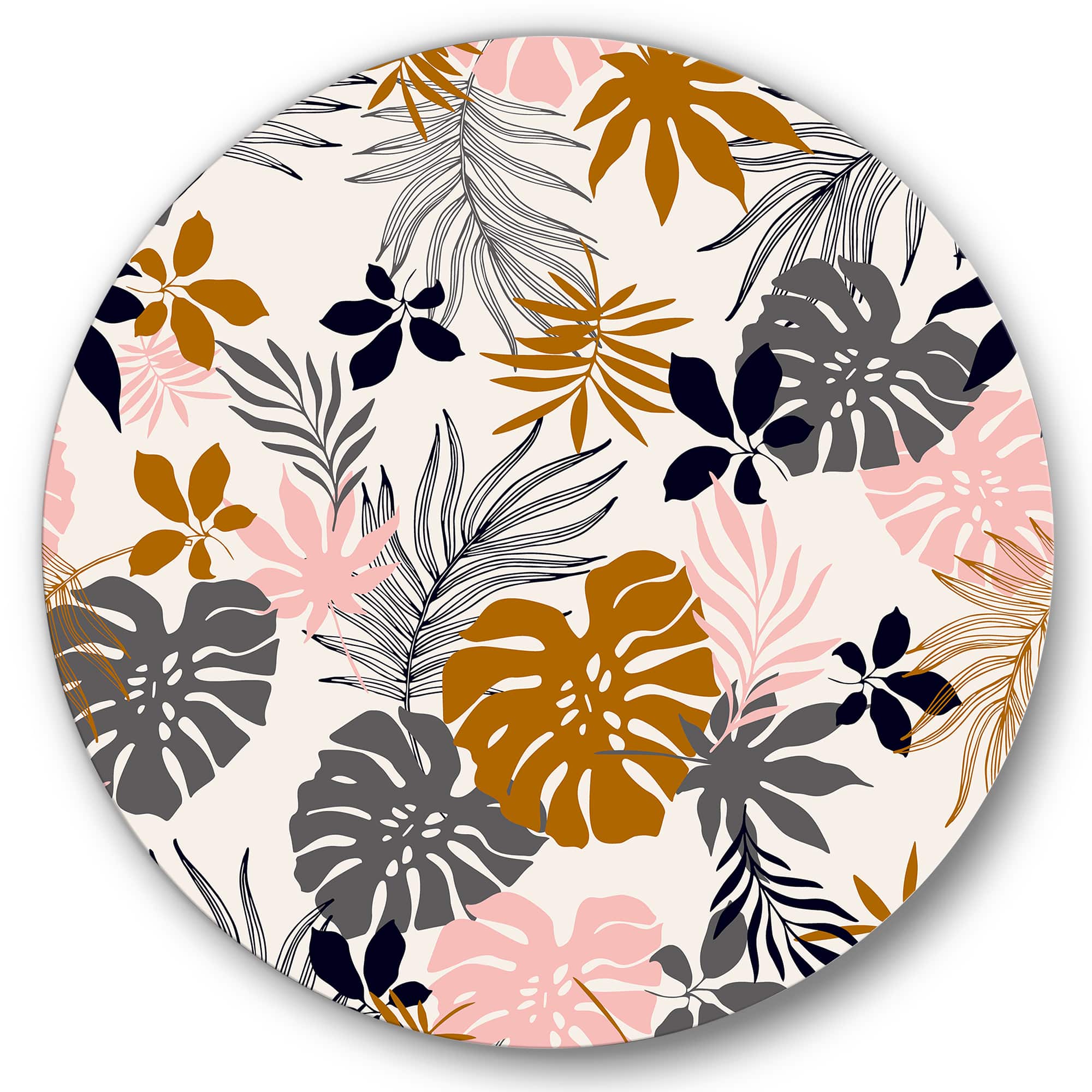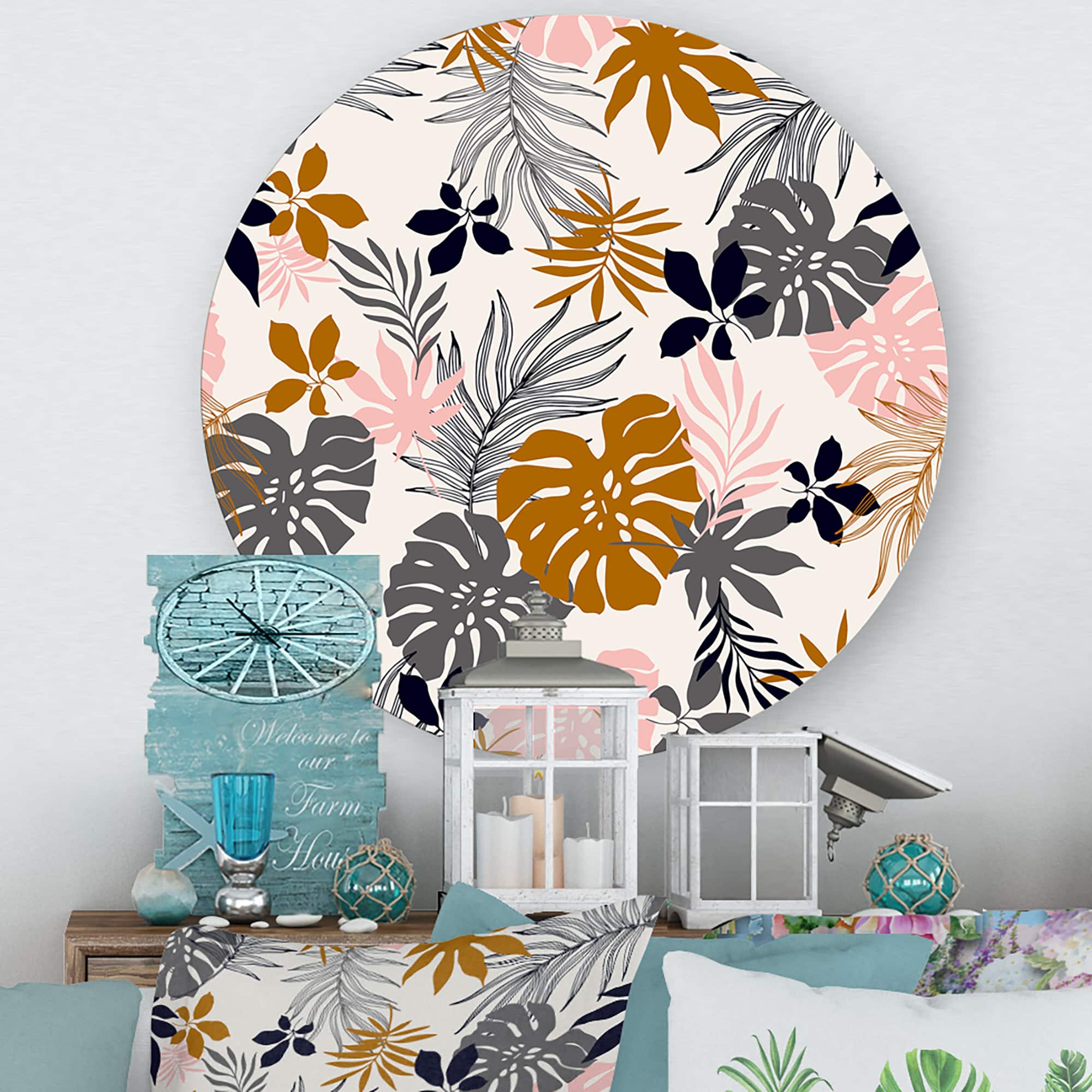 Designart - Tropical Naturepalm Monstera Leaves In Silhouette - Traditional Metal Circle Wall Art