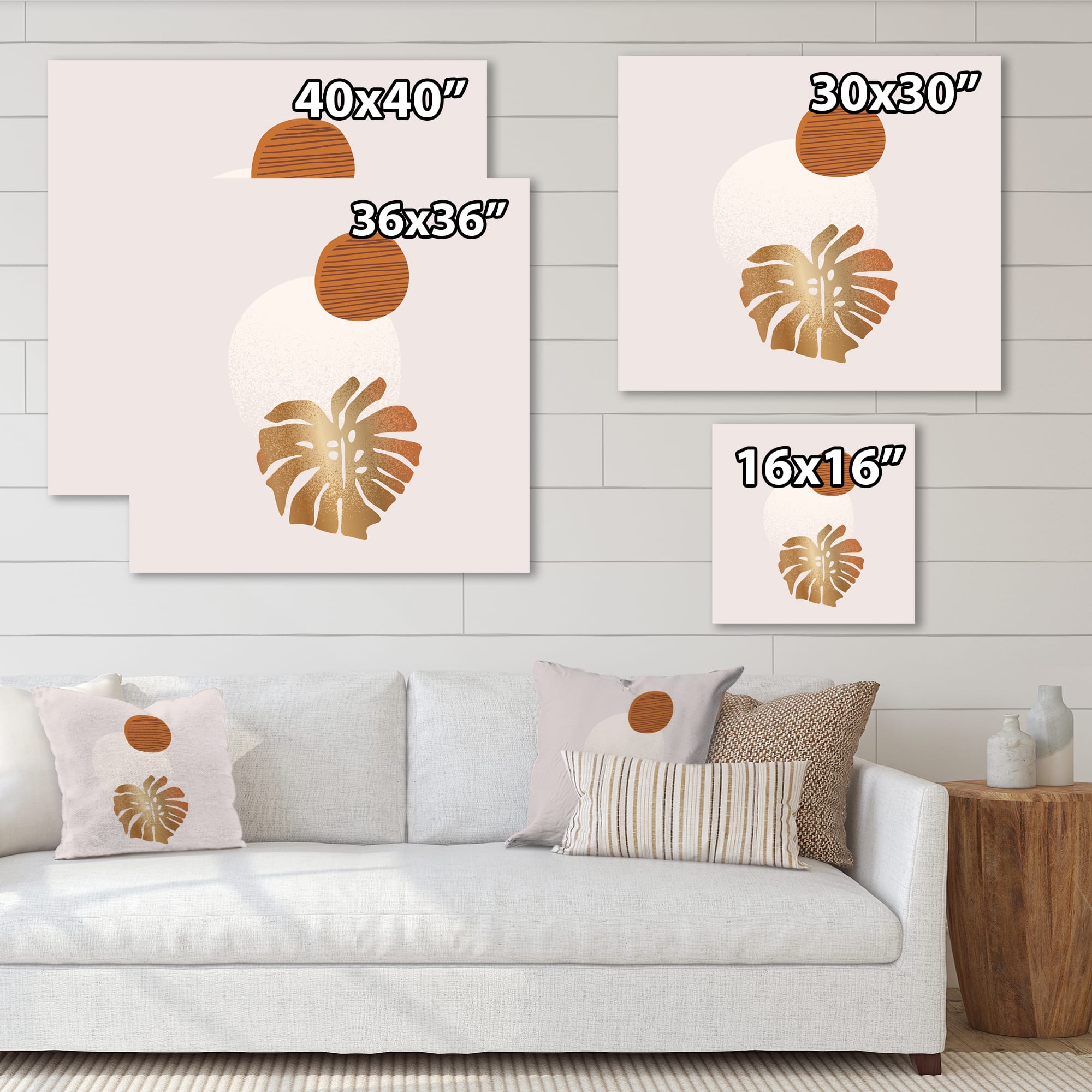 Designart - Tropical Palm Leaf & Abstract Geometry Shapes II - Modern Canvas Wall Art Print