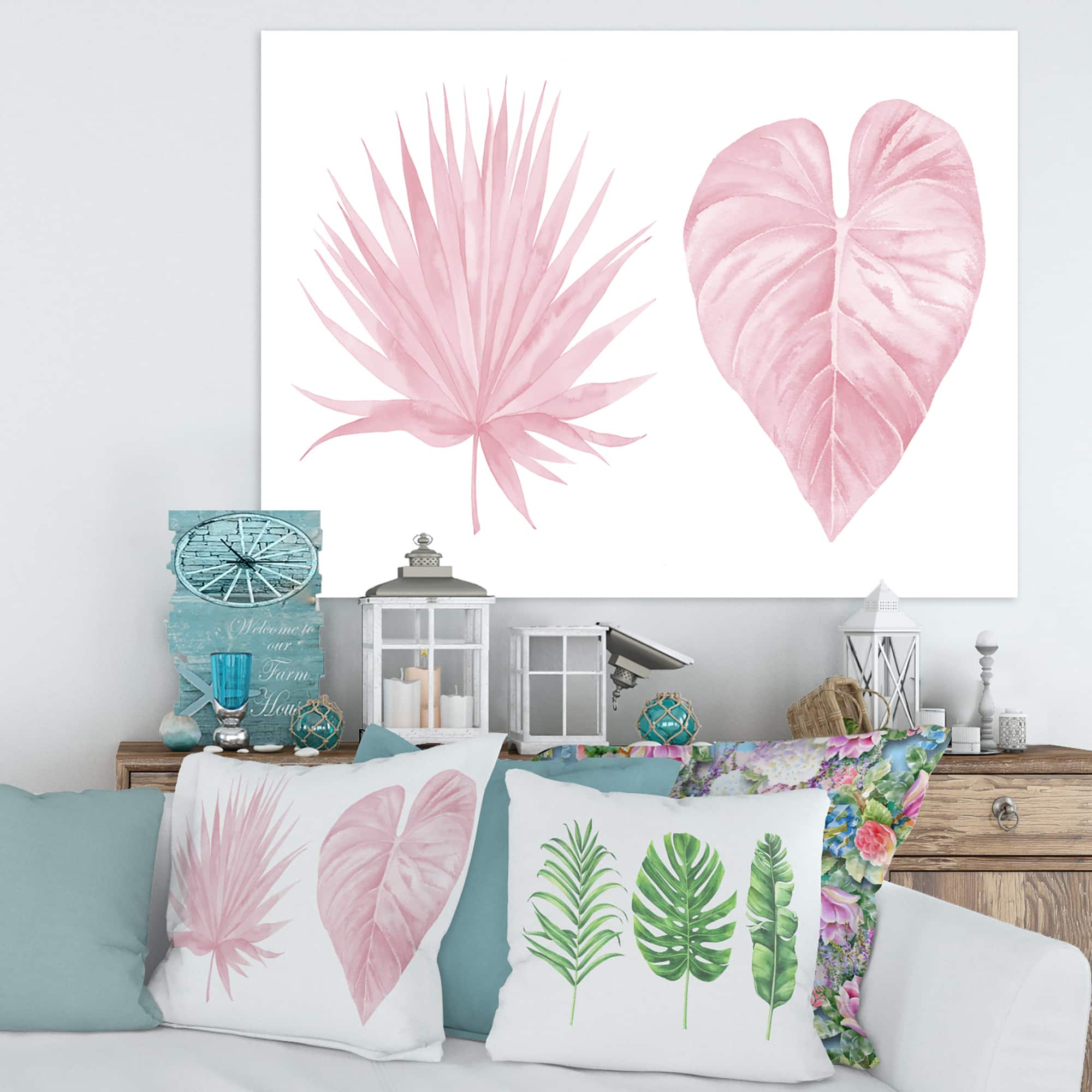 Designart - Tropical Pink Watercolour Leaves II - Shabby Chic Canvas Wall Art Print