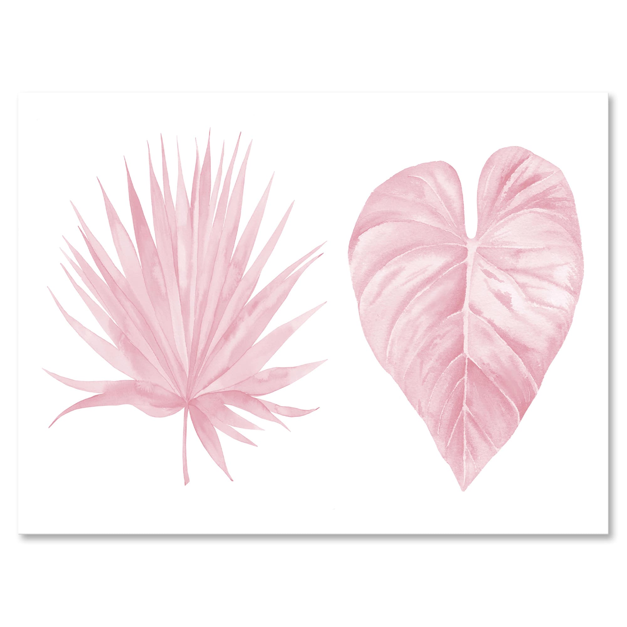 Designart - Tropical Pink Watercolour Leaves II - Shabby Chic Canvas Wall Art Print