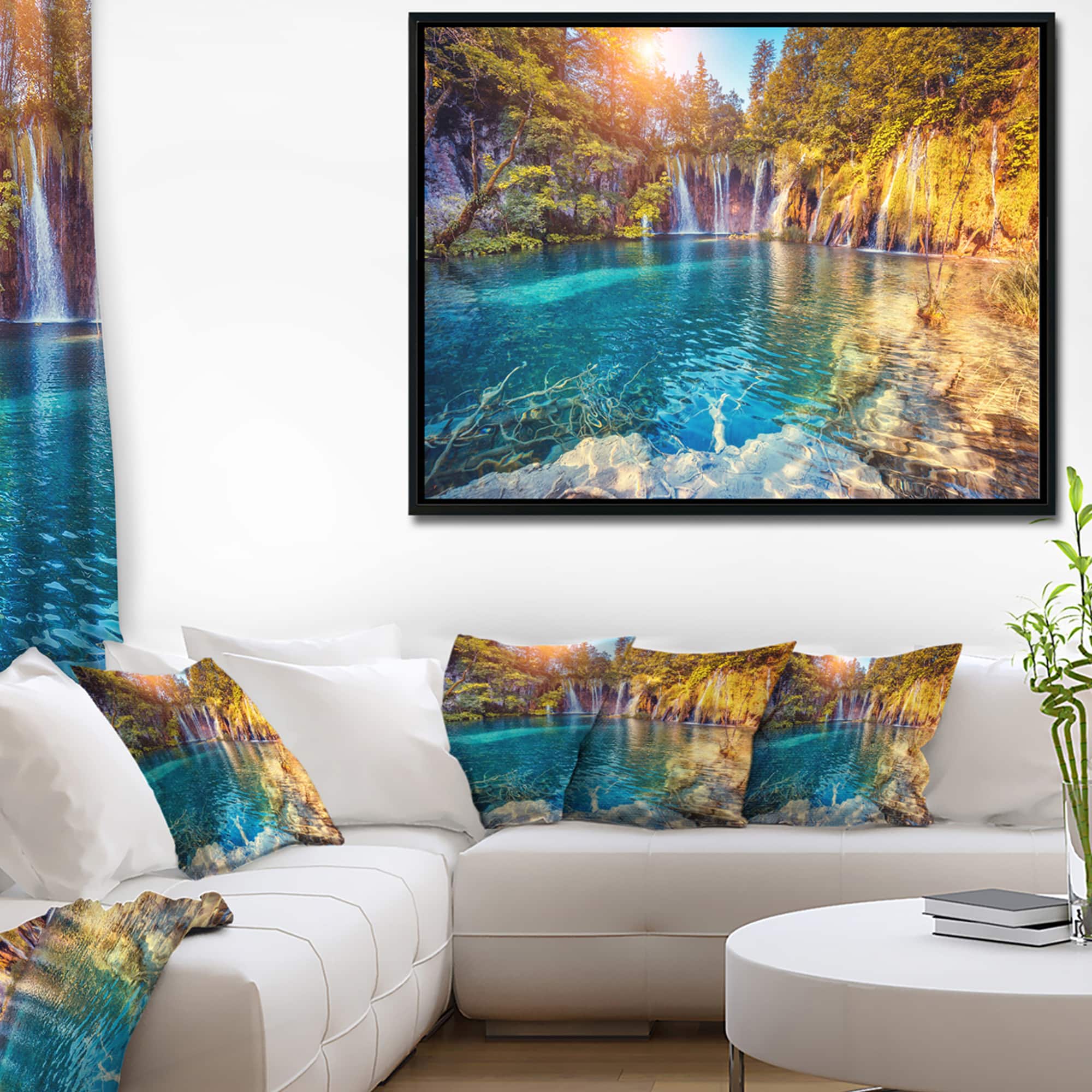Designart - Turquoise Water and Sunny Beams - Landscape Photography Framed Canvas Print