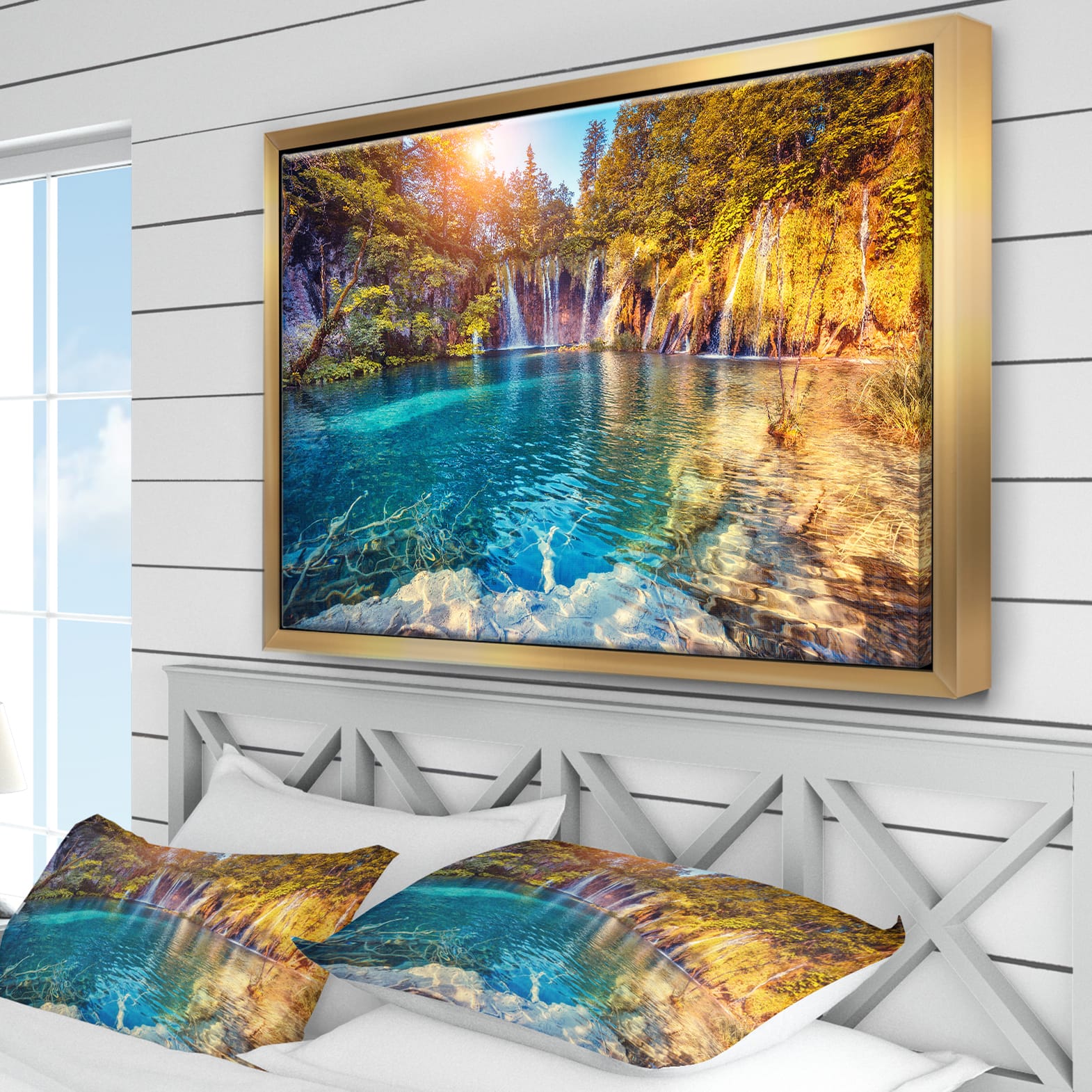 Designart - Turquoise Water and Sunny Beams - Landscape Photography Framed Canvas Print