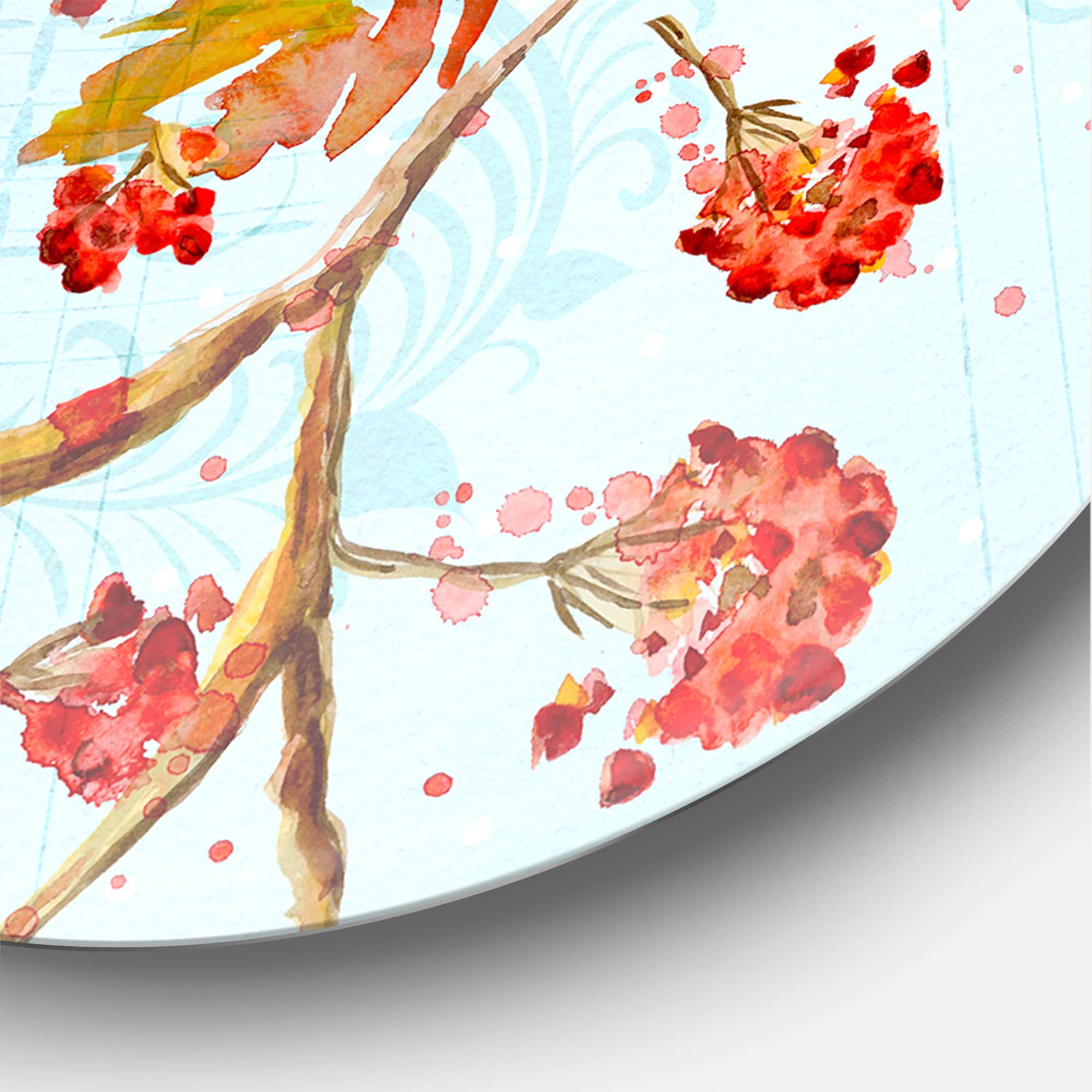 Designart - Two Birds On Branches During Autumn - Traditional Metal Circle Wall Art