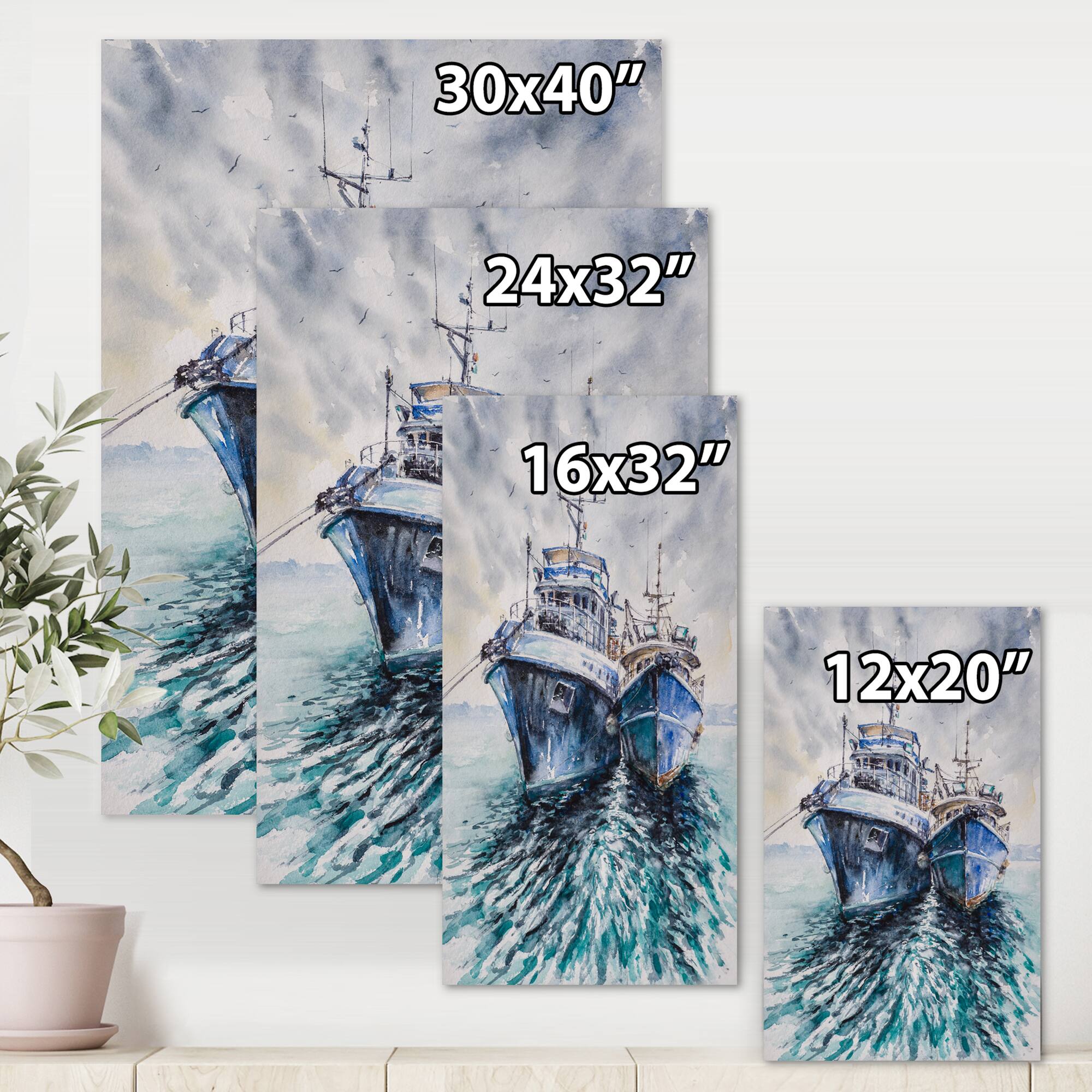 Designart - Two Fishing Boats Before A Storm Anchored - Nautical & Coastal Canvas Wall Art Print