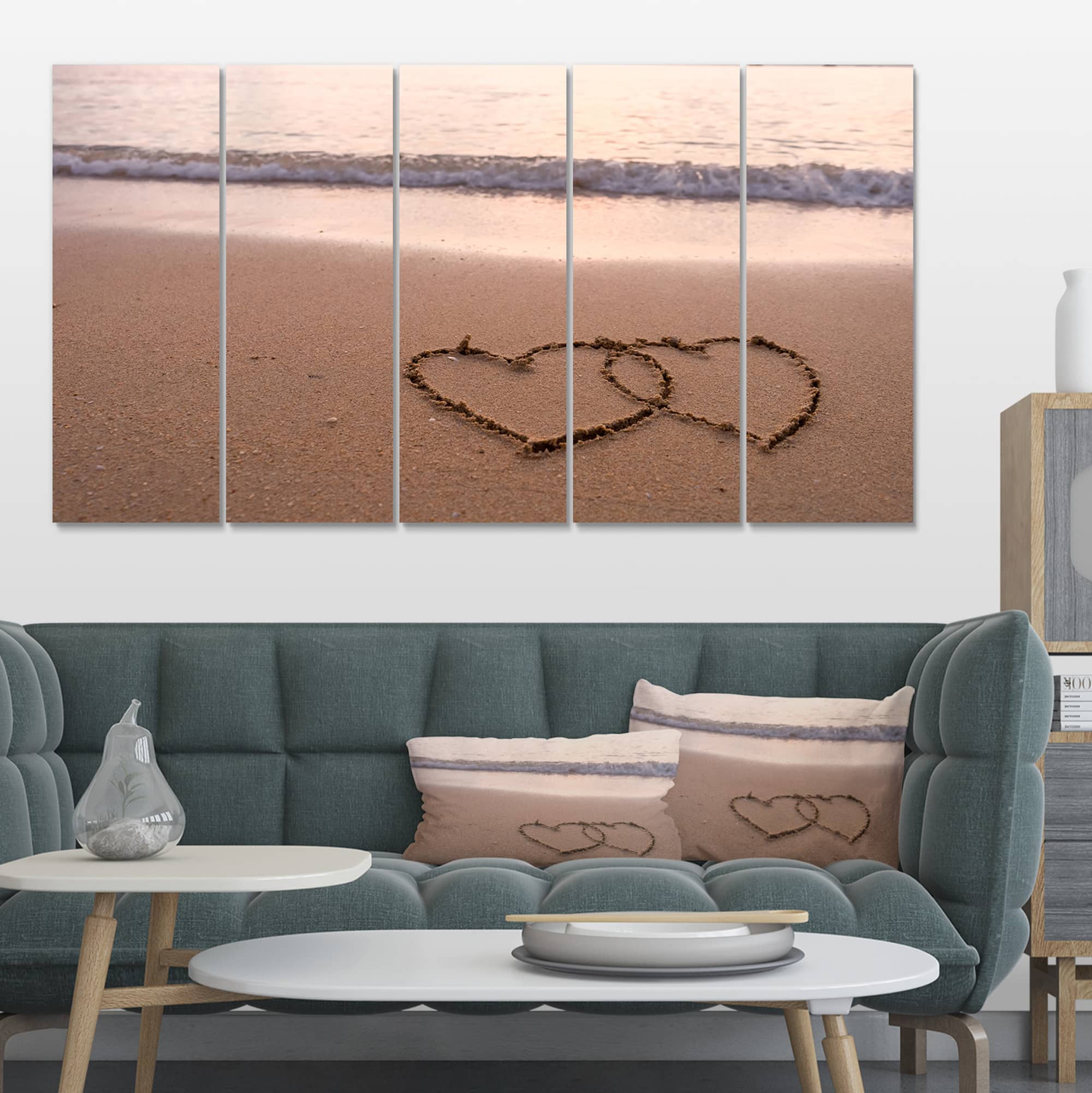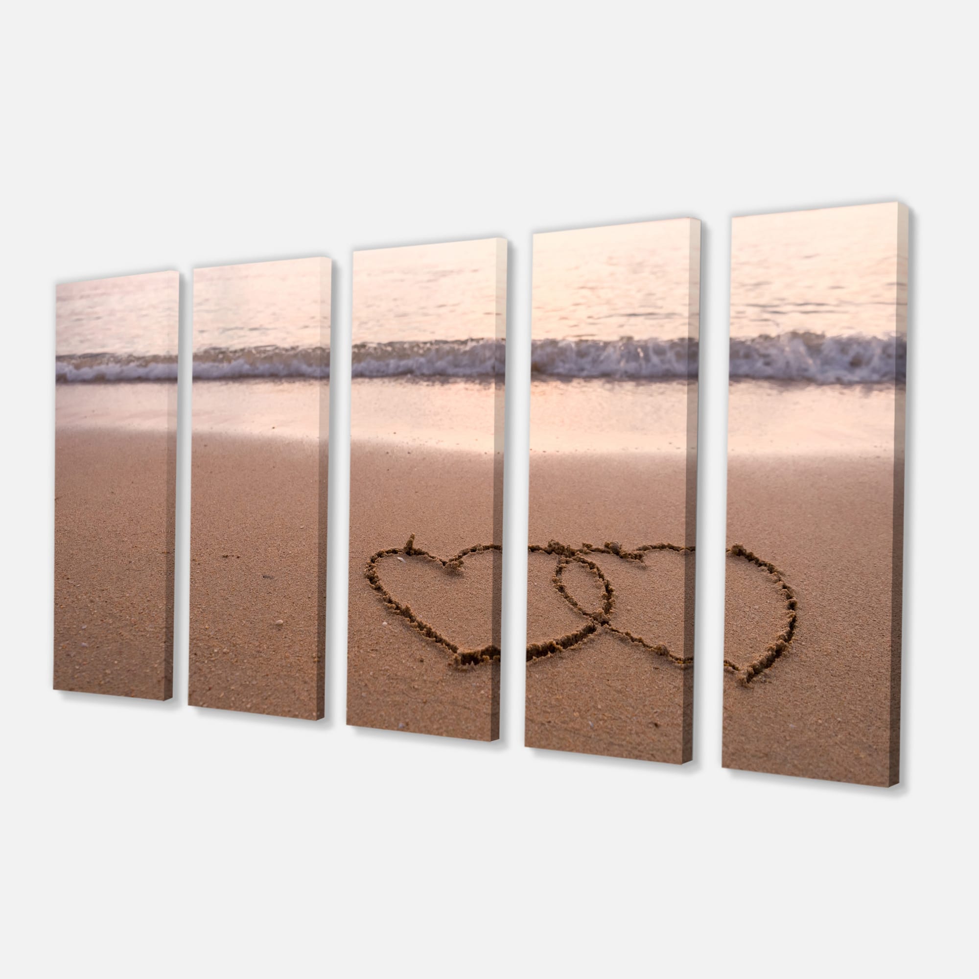 Designart - Two Hearts Drawn on the Beach - Extra Large Seascape Art Canvas