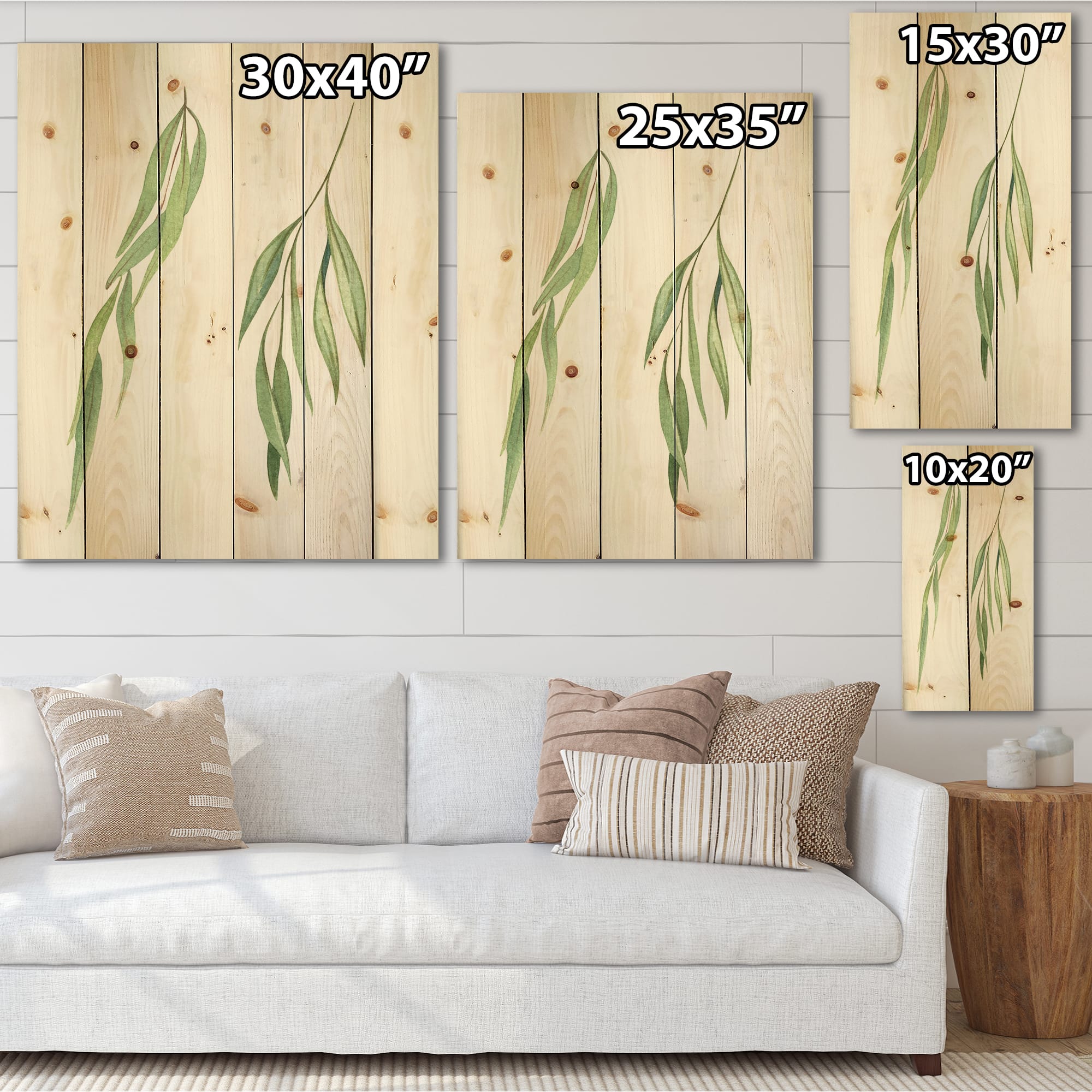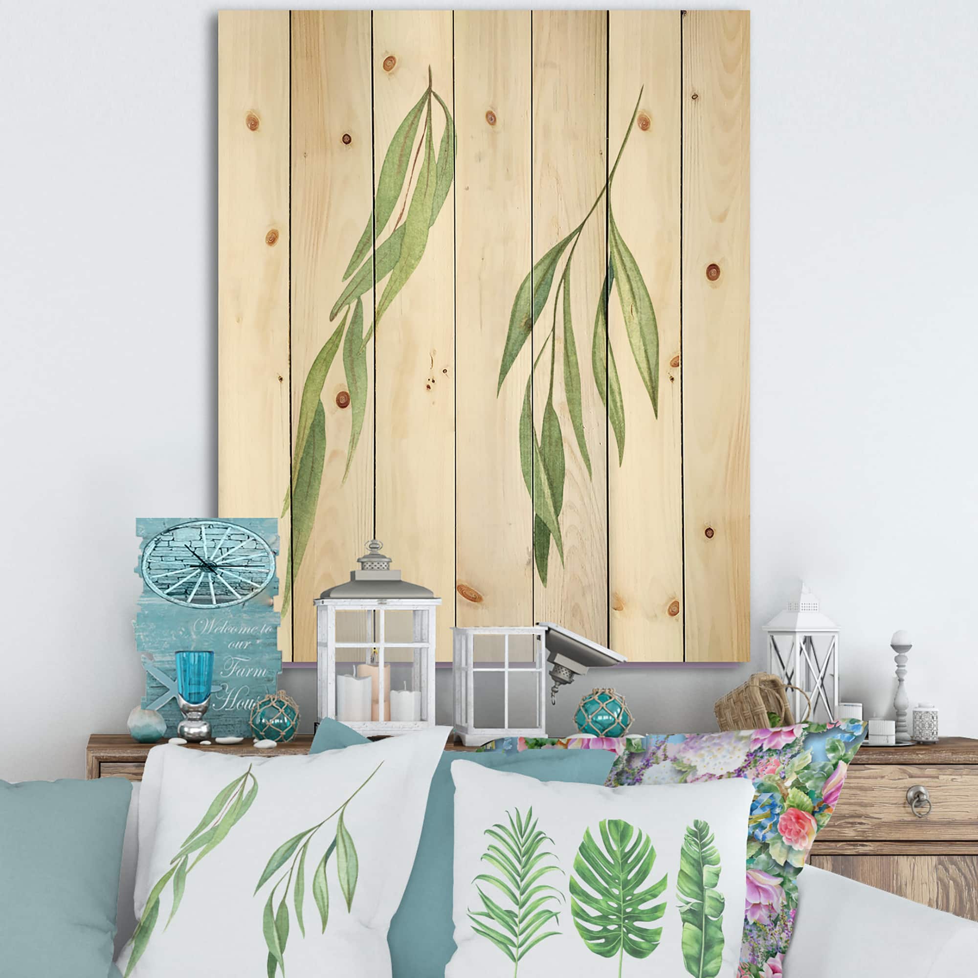 Designart - Two Willow Branches - Farmhouse Print on Natural Pine Wood