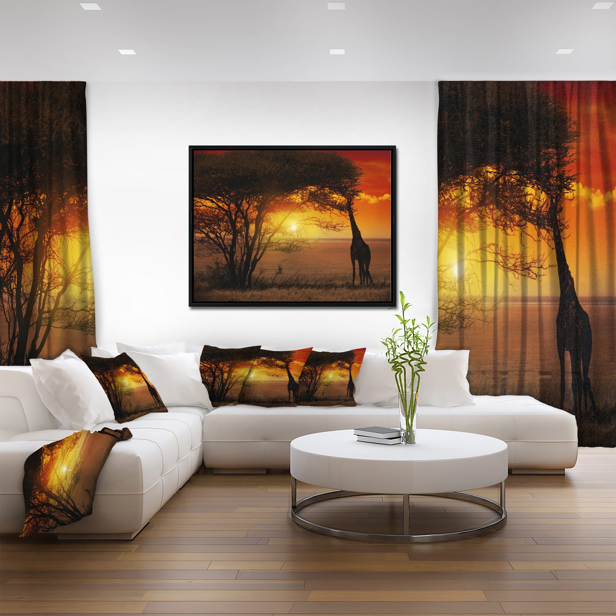 Designart - Typical African Sunset with Giraffe - Oversized African Landscape Framed Canvas Art