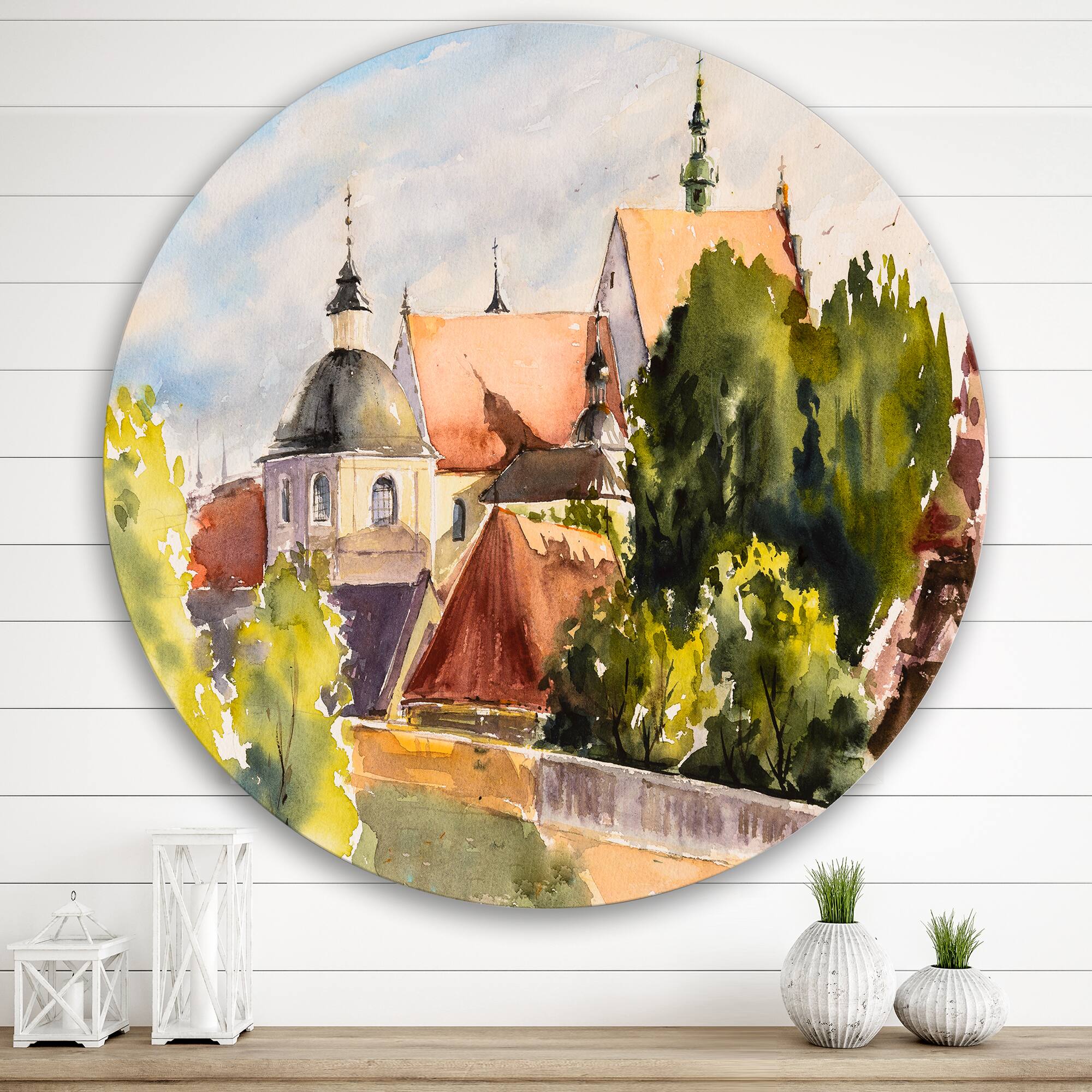 Designart - View of Old Polish City In Nature - Traditional Metal Circle Wall Art