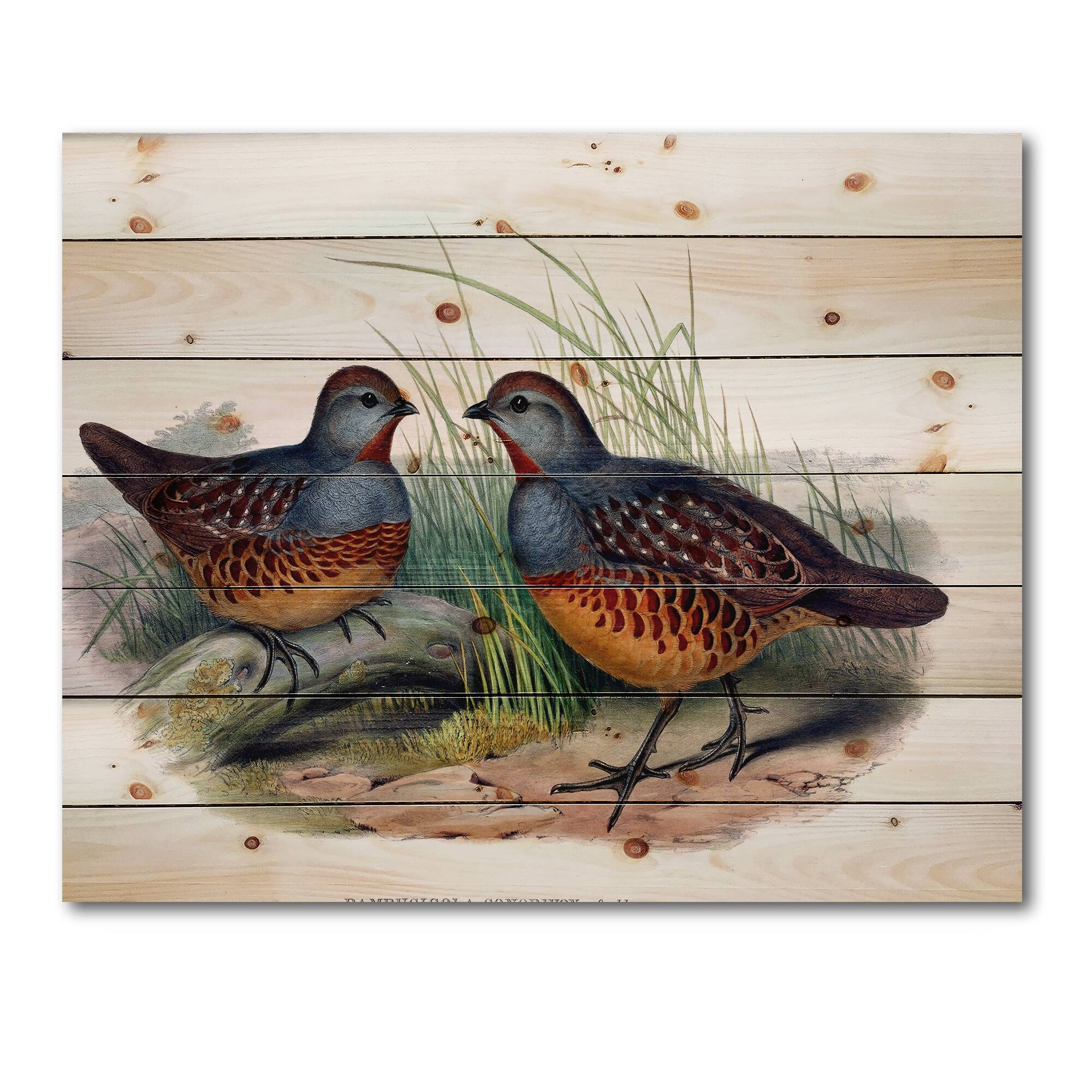 Designart - Vintage Birds In The Wild VII - Traditional Print on Natural Pine Wood