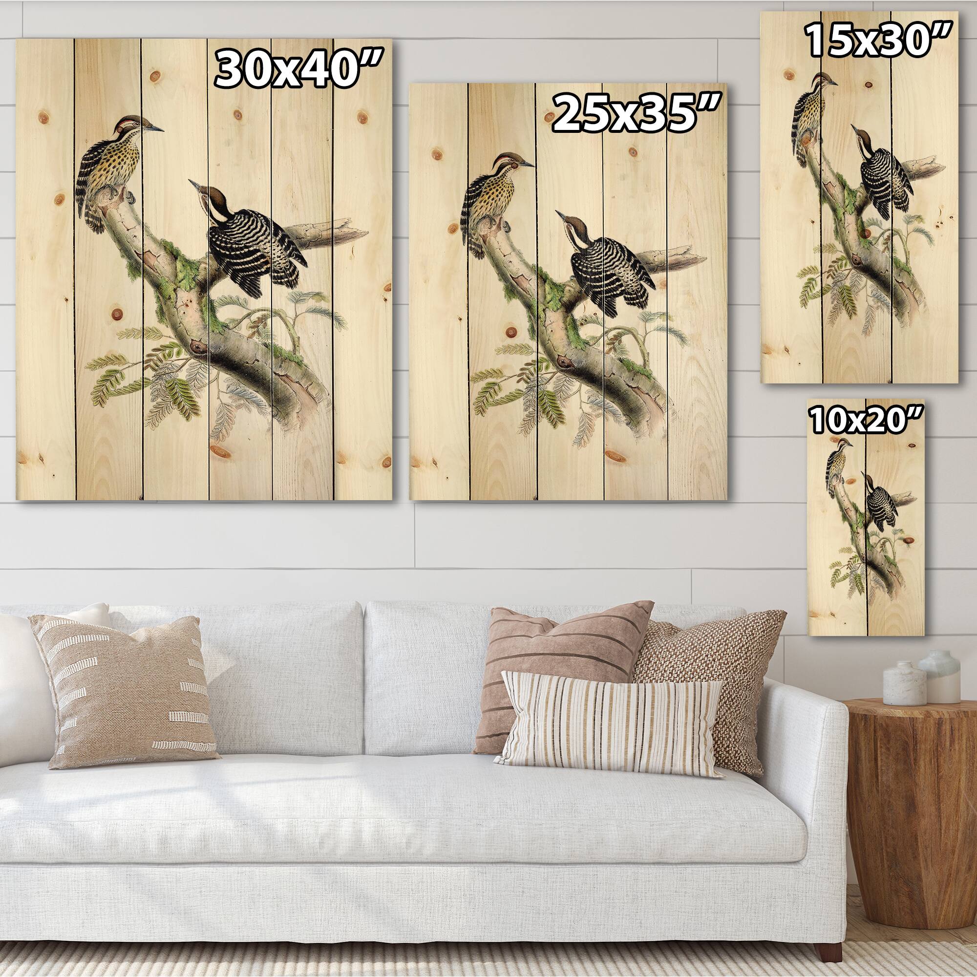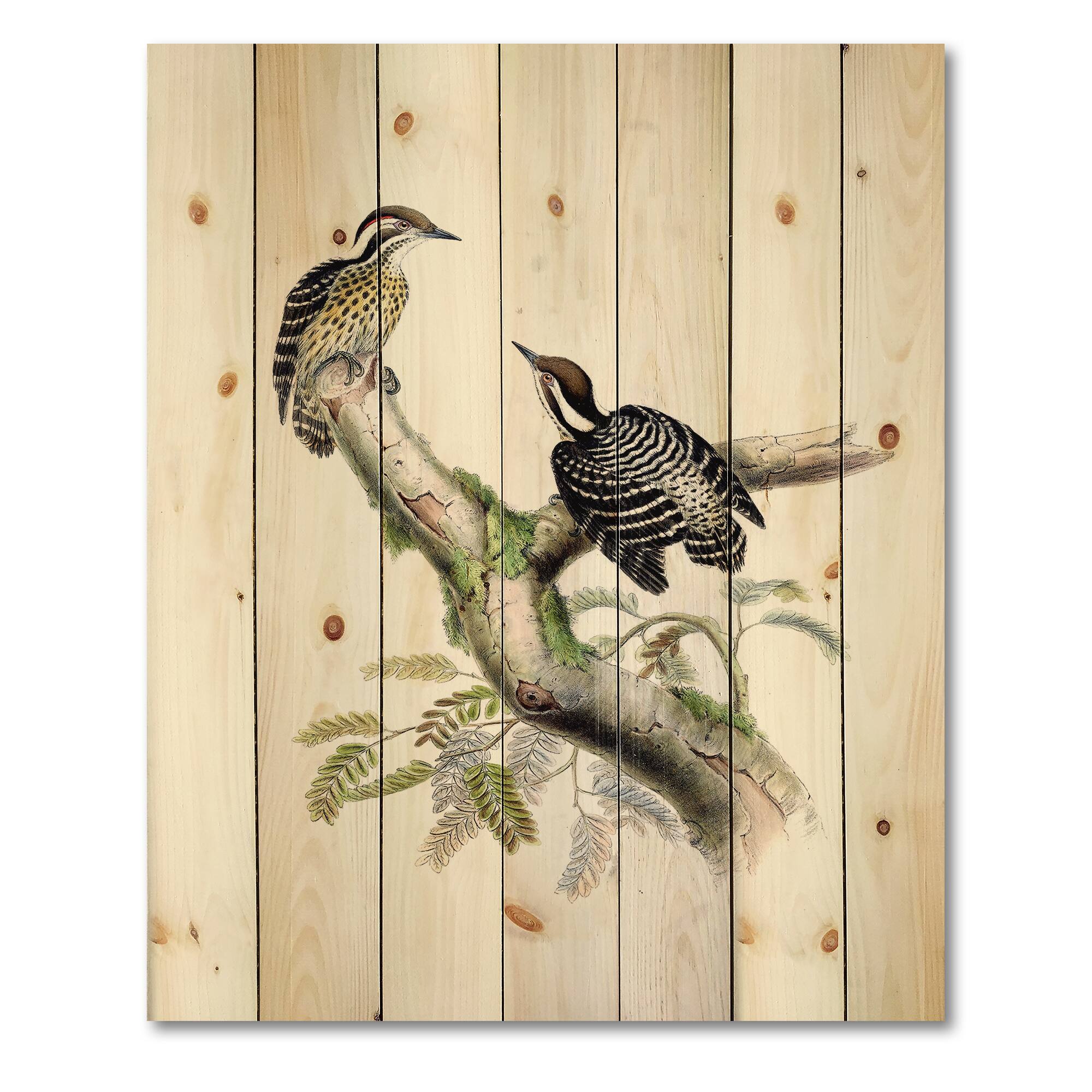 Designart - Vintage Birds In The Wild VIII - Traditional Print on Natural Pine Wood