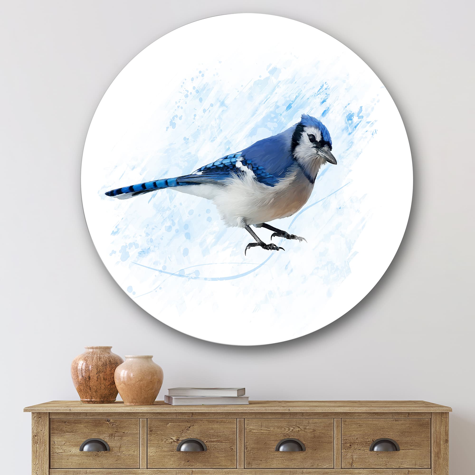 Designart - Vintage Blue Jay Bird - Traditional Metal Circle Wall Art