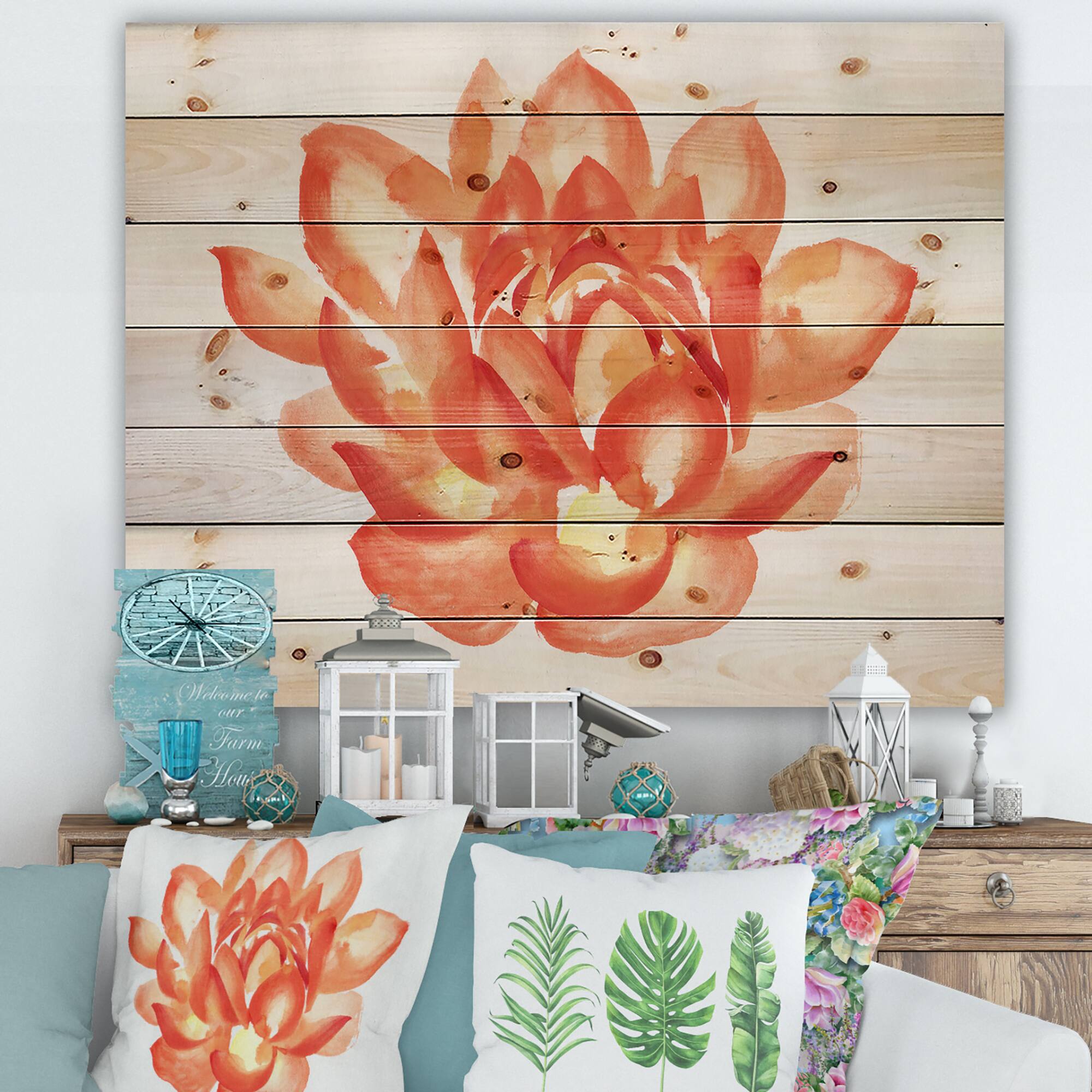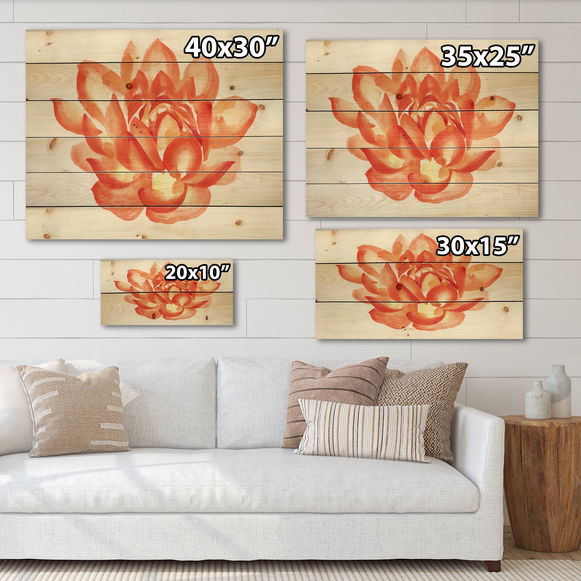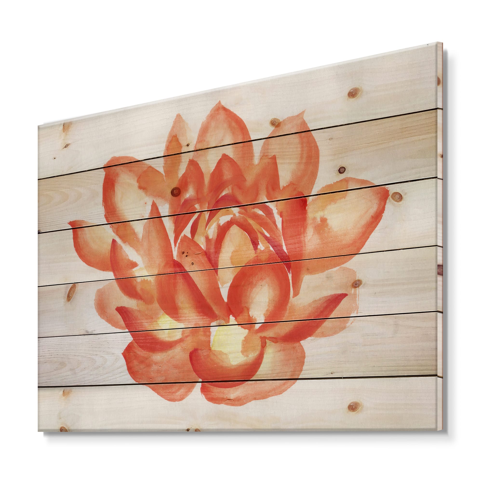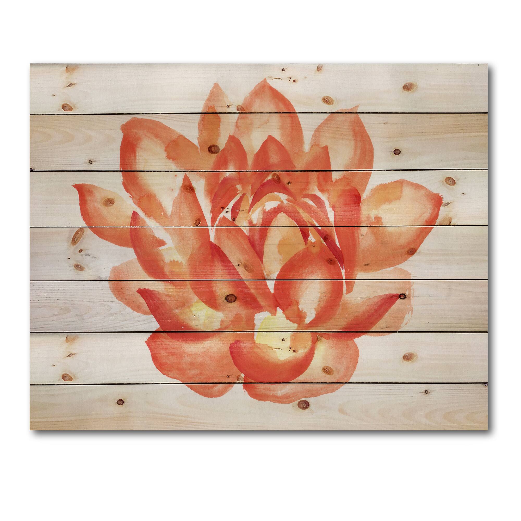 Designart - Vintage Detail of A Orange Lotus - Traditional Print on Natural Pine Wood