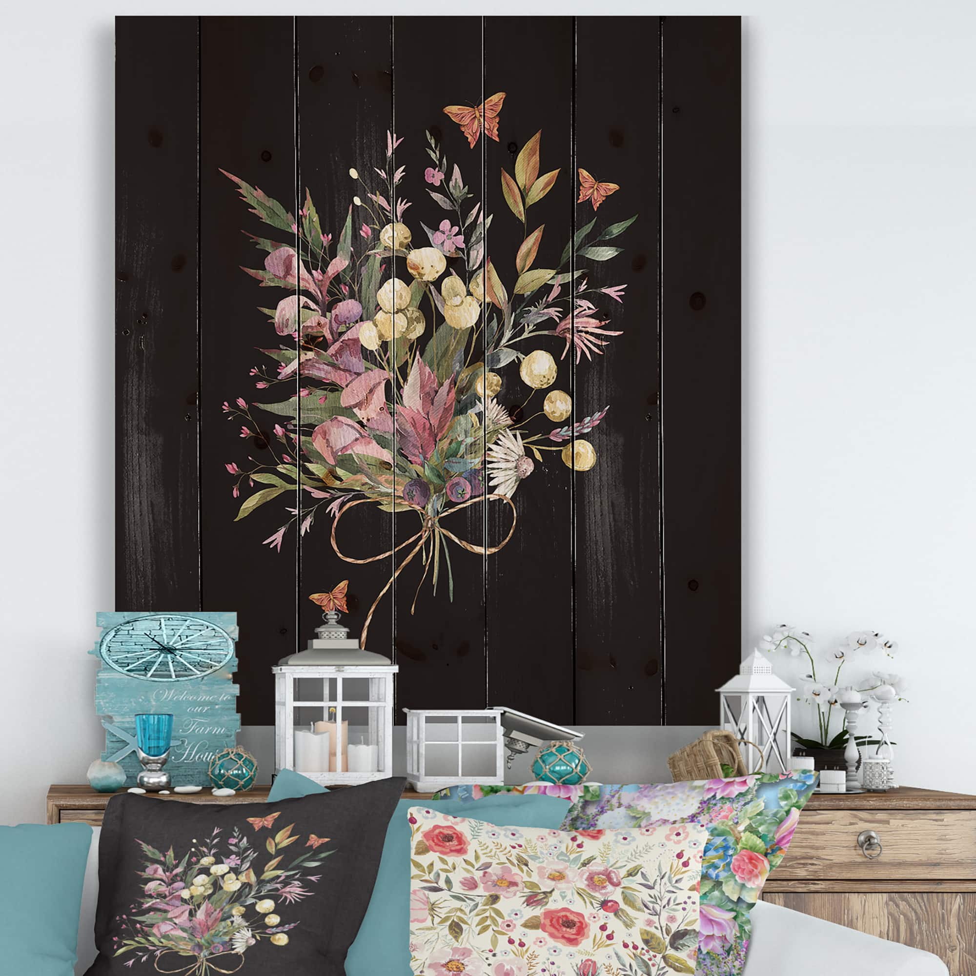 Designart - Vintage Floral Summer Wildflowers Arrangement - Traditional Print on Natural Pine Wood