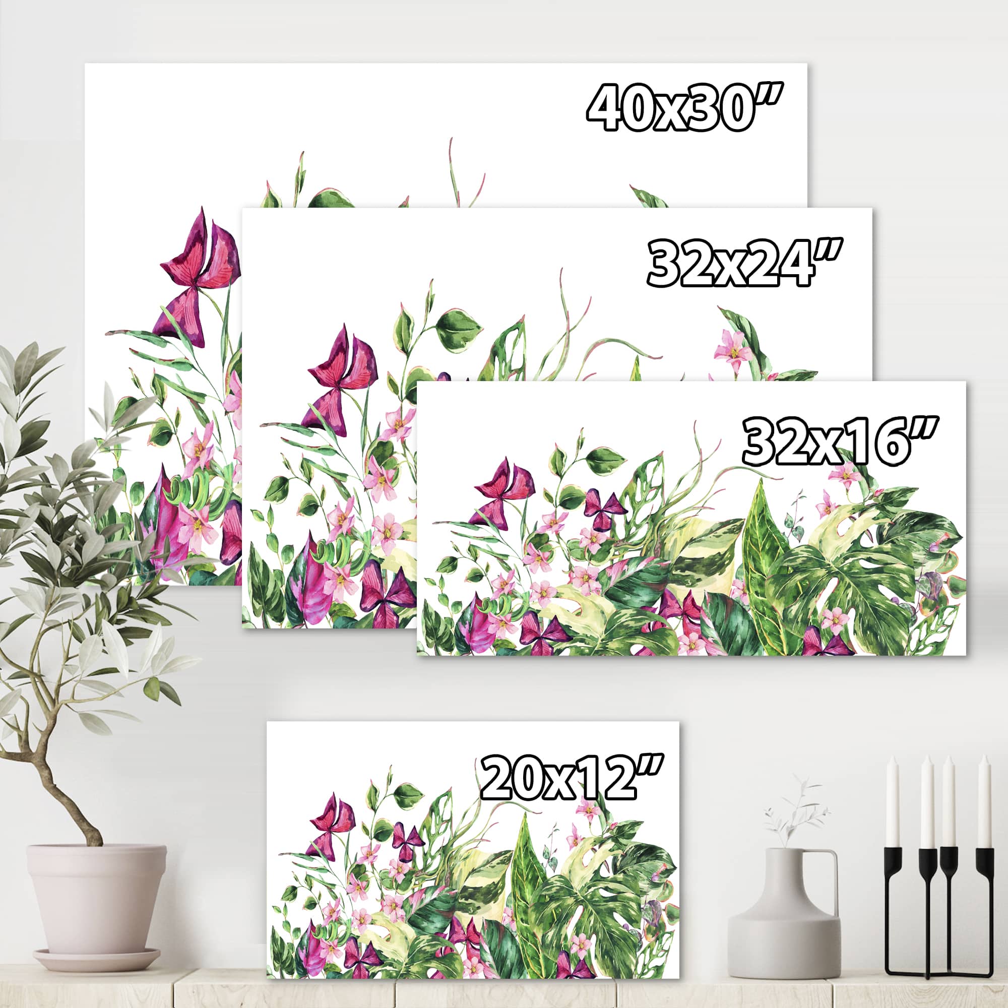 Designart - Vintage Floral Tropical Leaves I - Tropical Canvas Wall Art Print