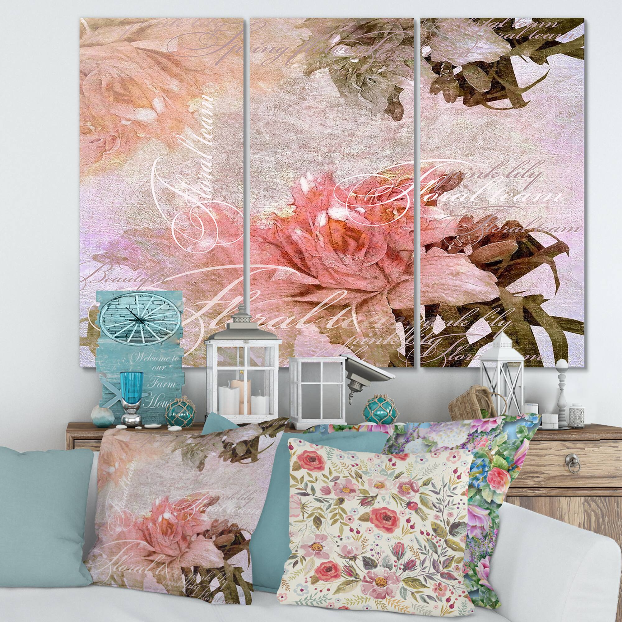 Designart - Vintage Flowers In Pastel Colours - Traditional Canvas Wall Art Print