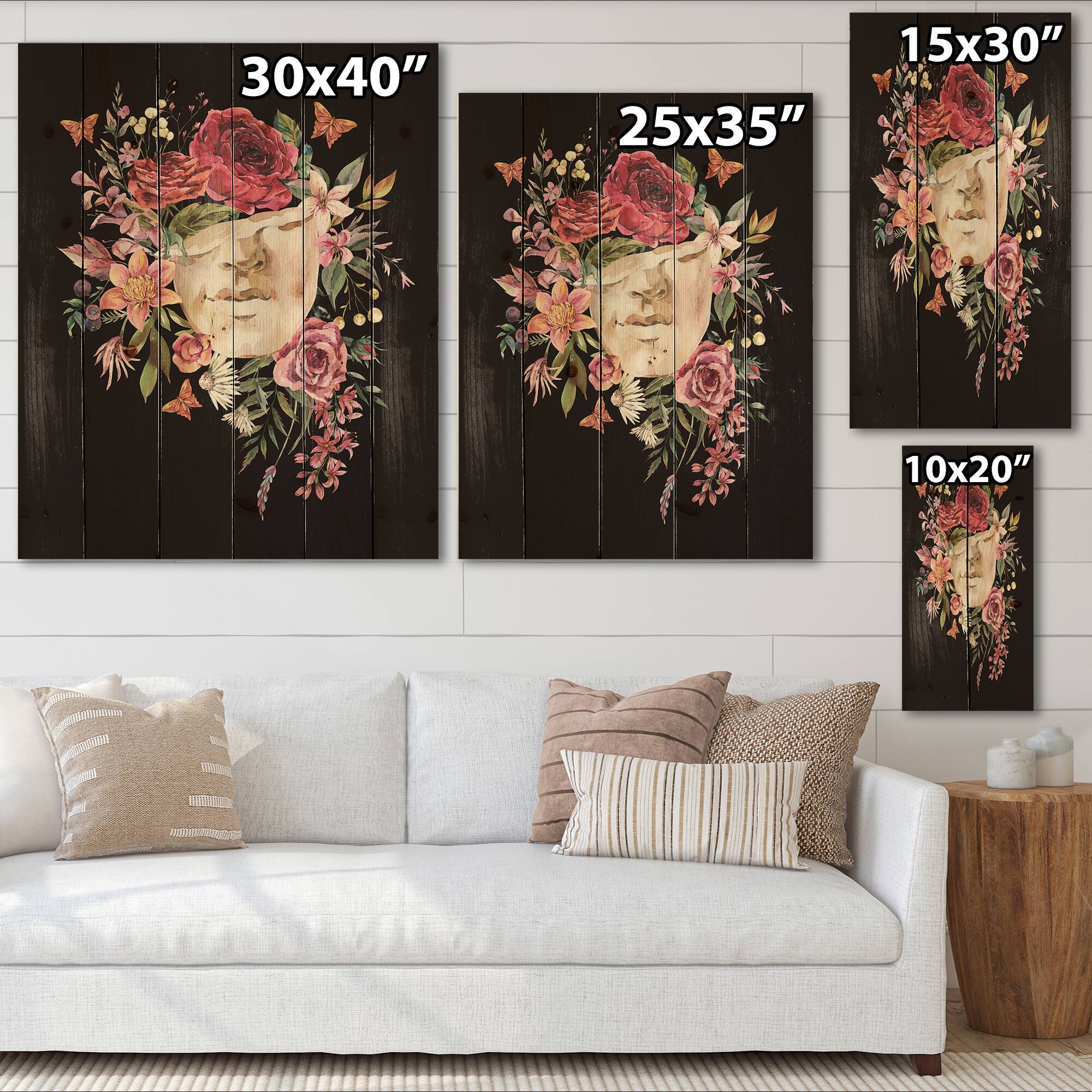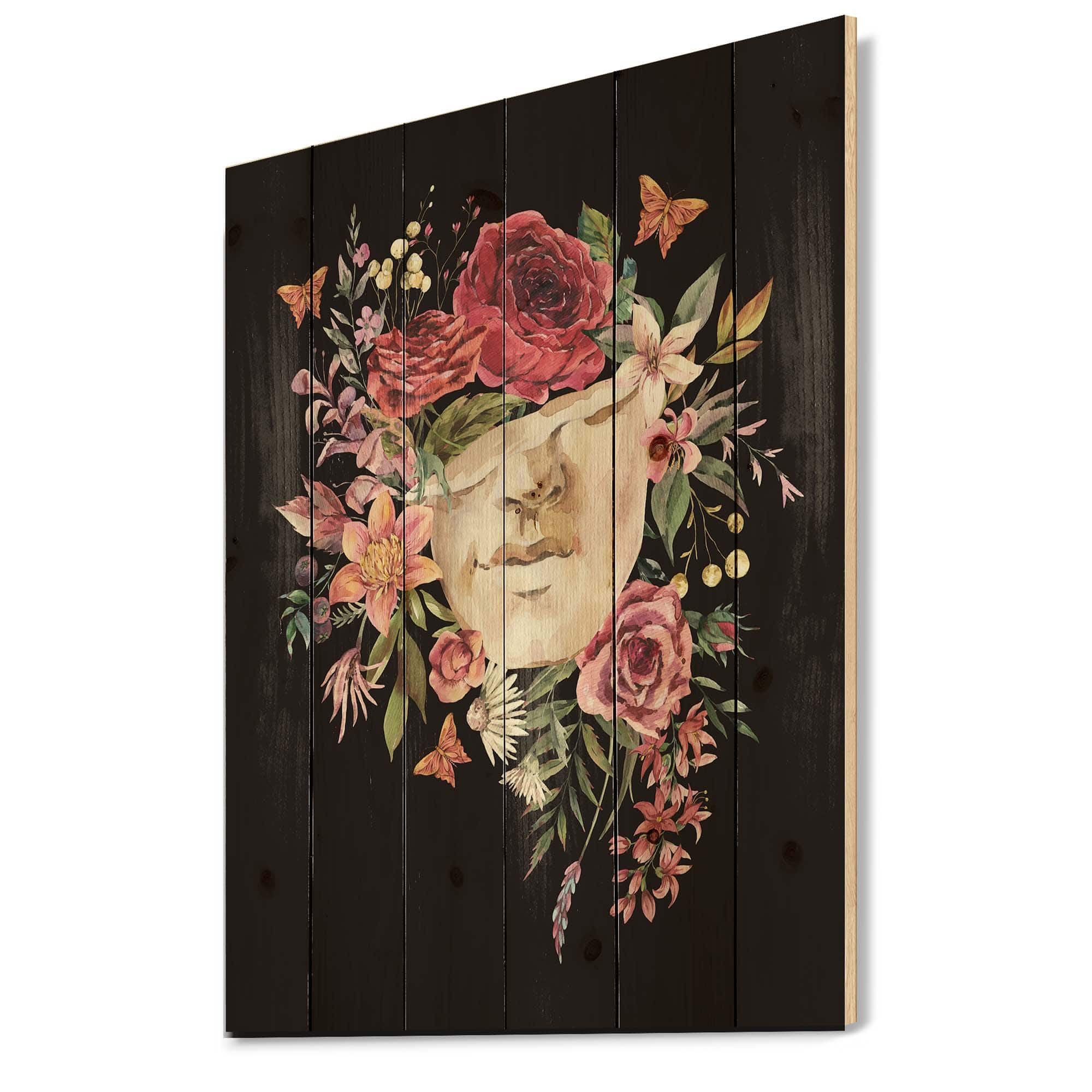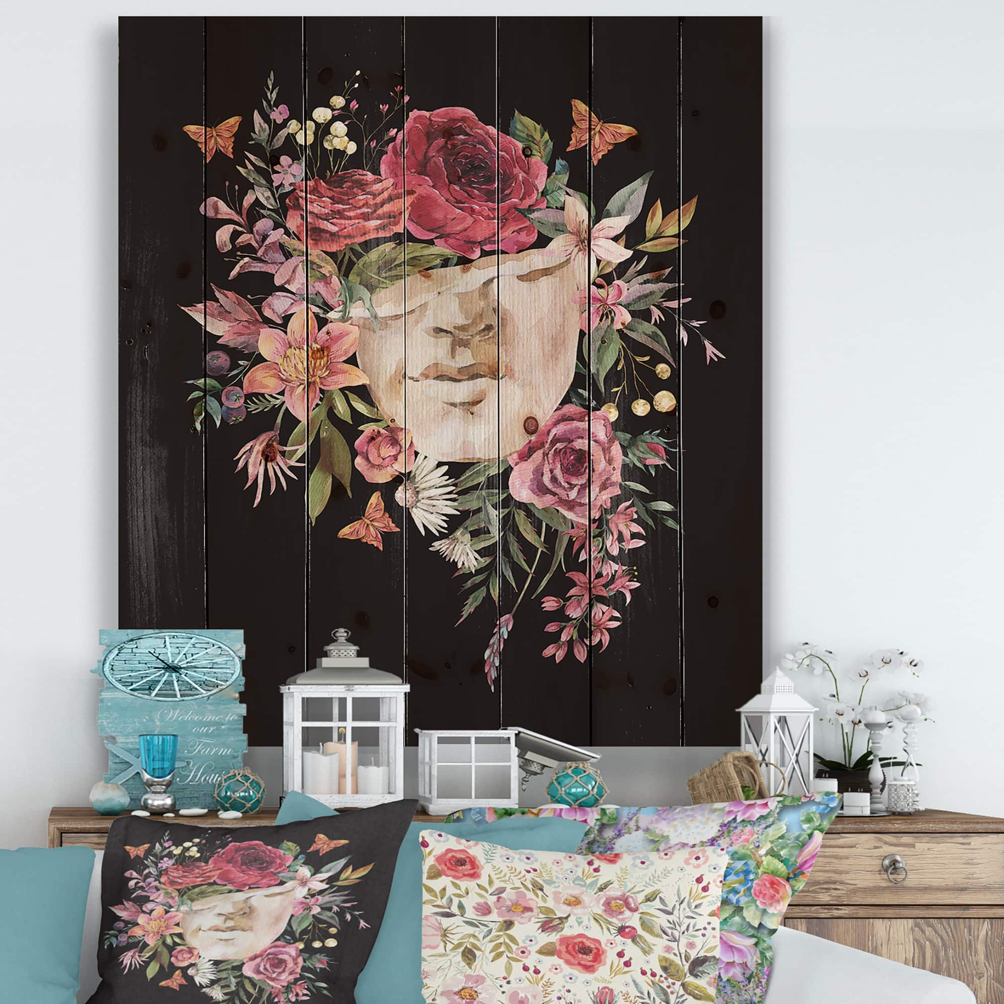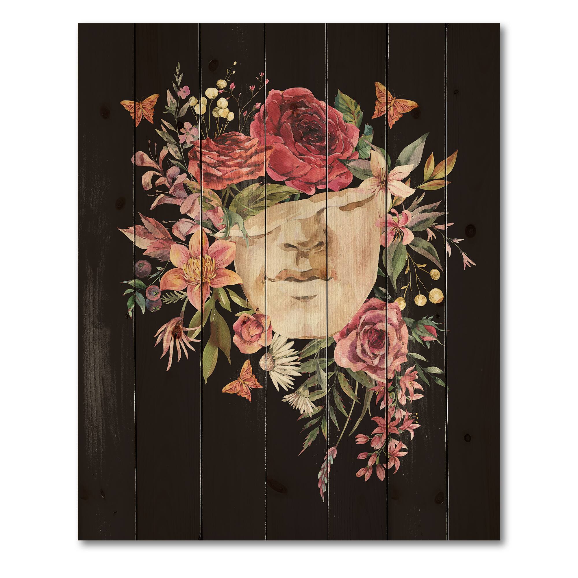 Designart - Vintage Greek Sculpture Detail With Dry Flowers - Traditional Print on Natural Pine Wood