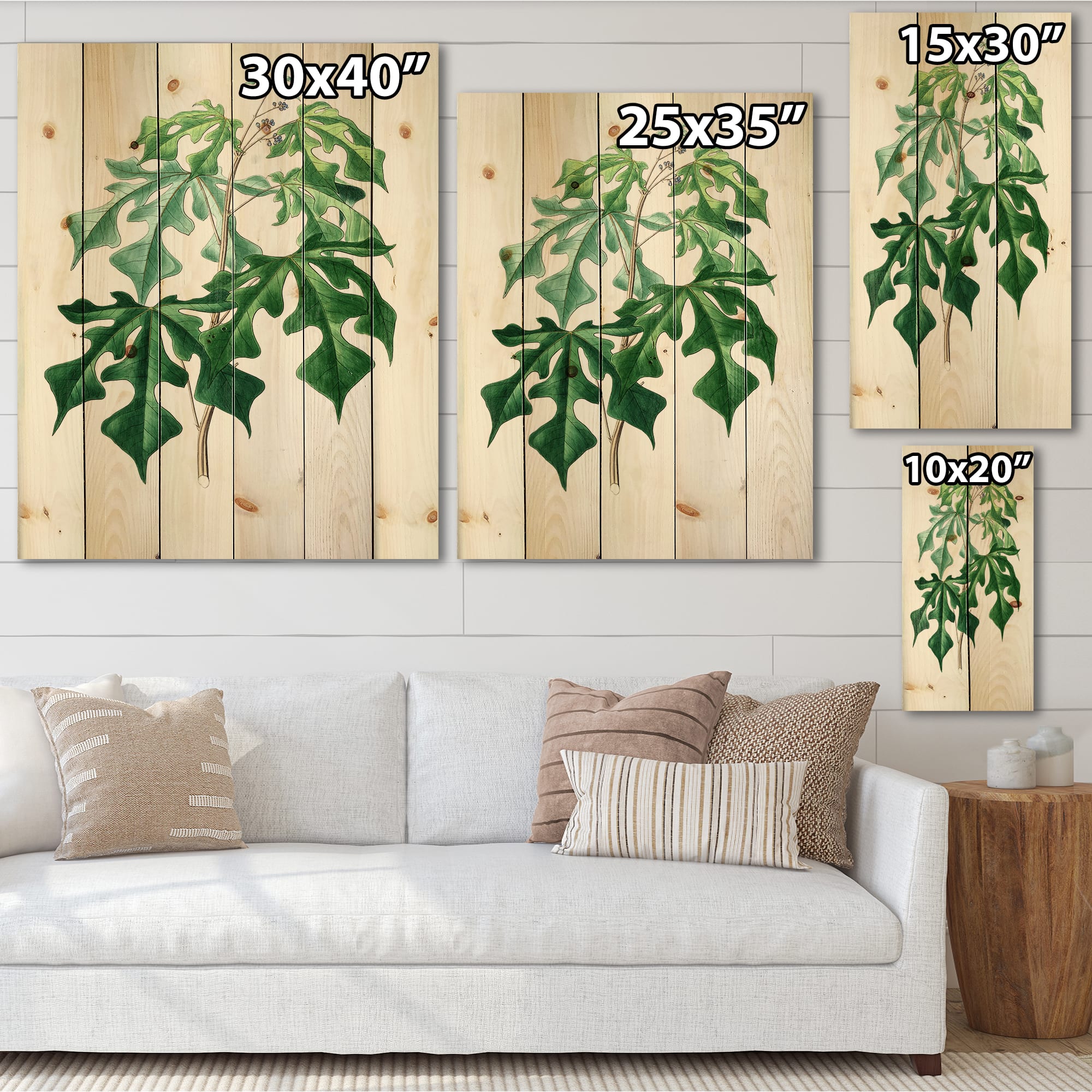 Designart - Vintage Green Leaves Plants II - Traditional Print on Natural Pine Wood