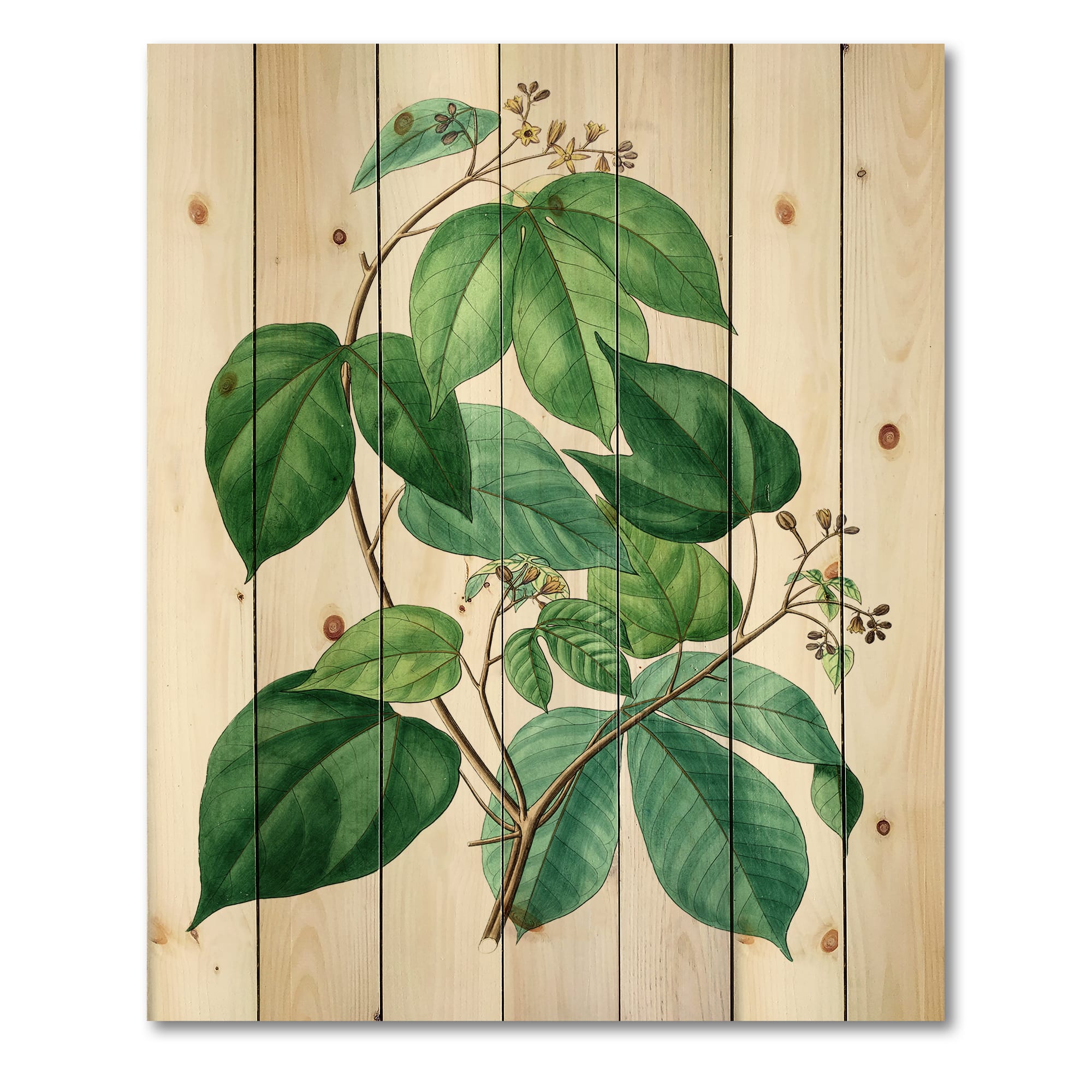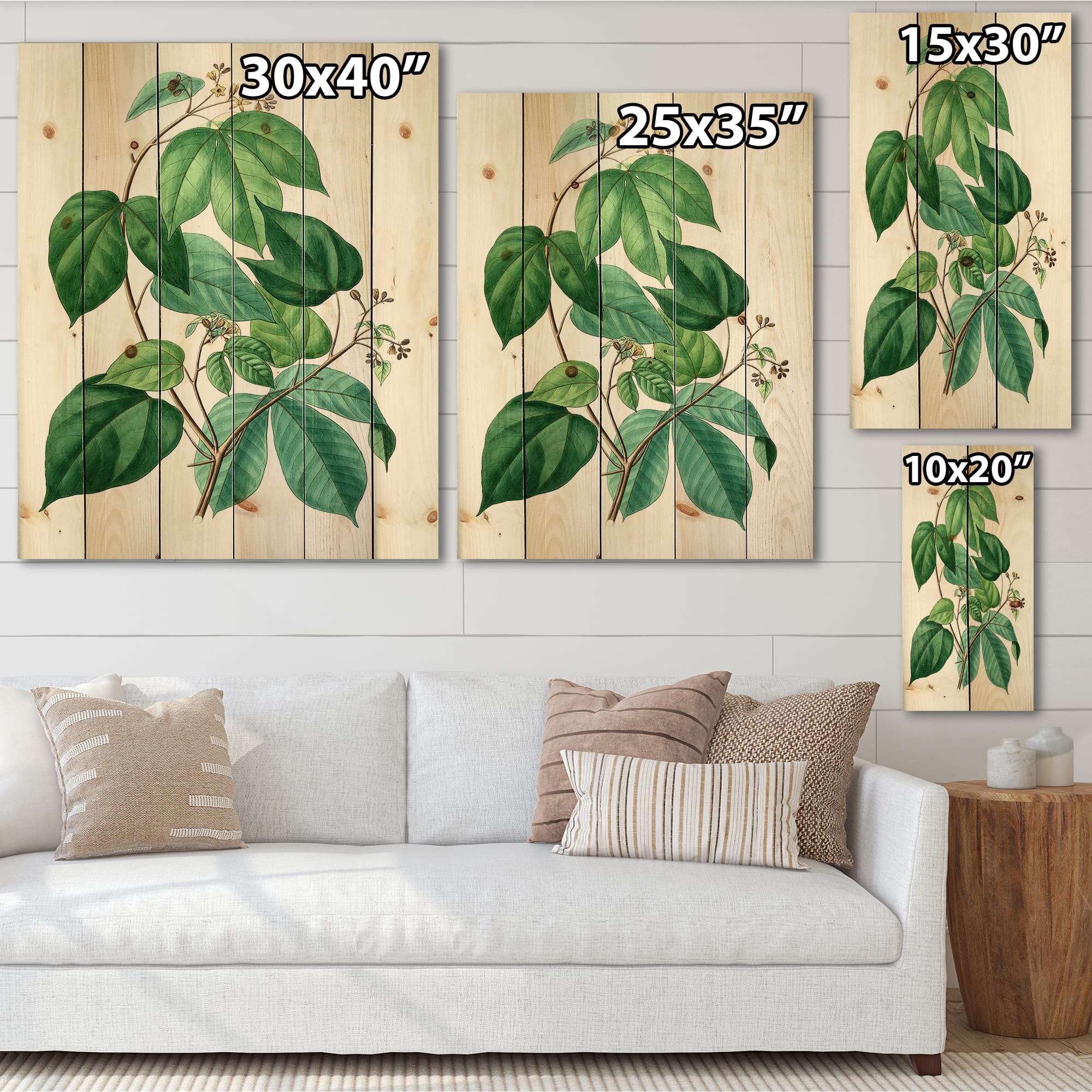 Designart - Vintage Green Leaves Plants III - Traditional Print on Natural Pine Wood