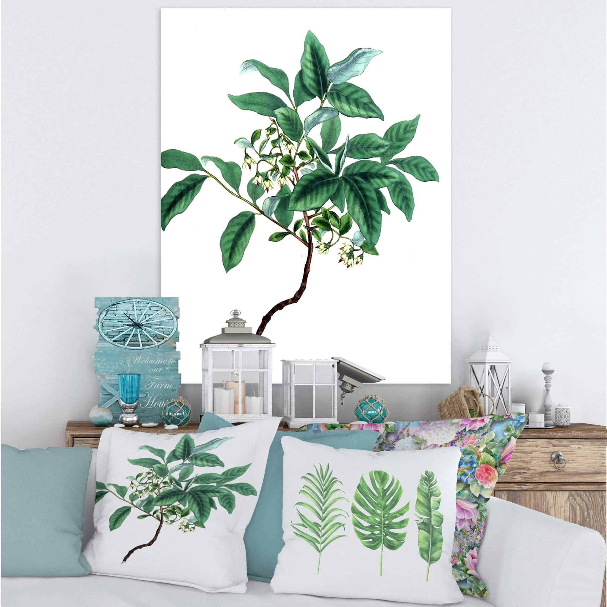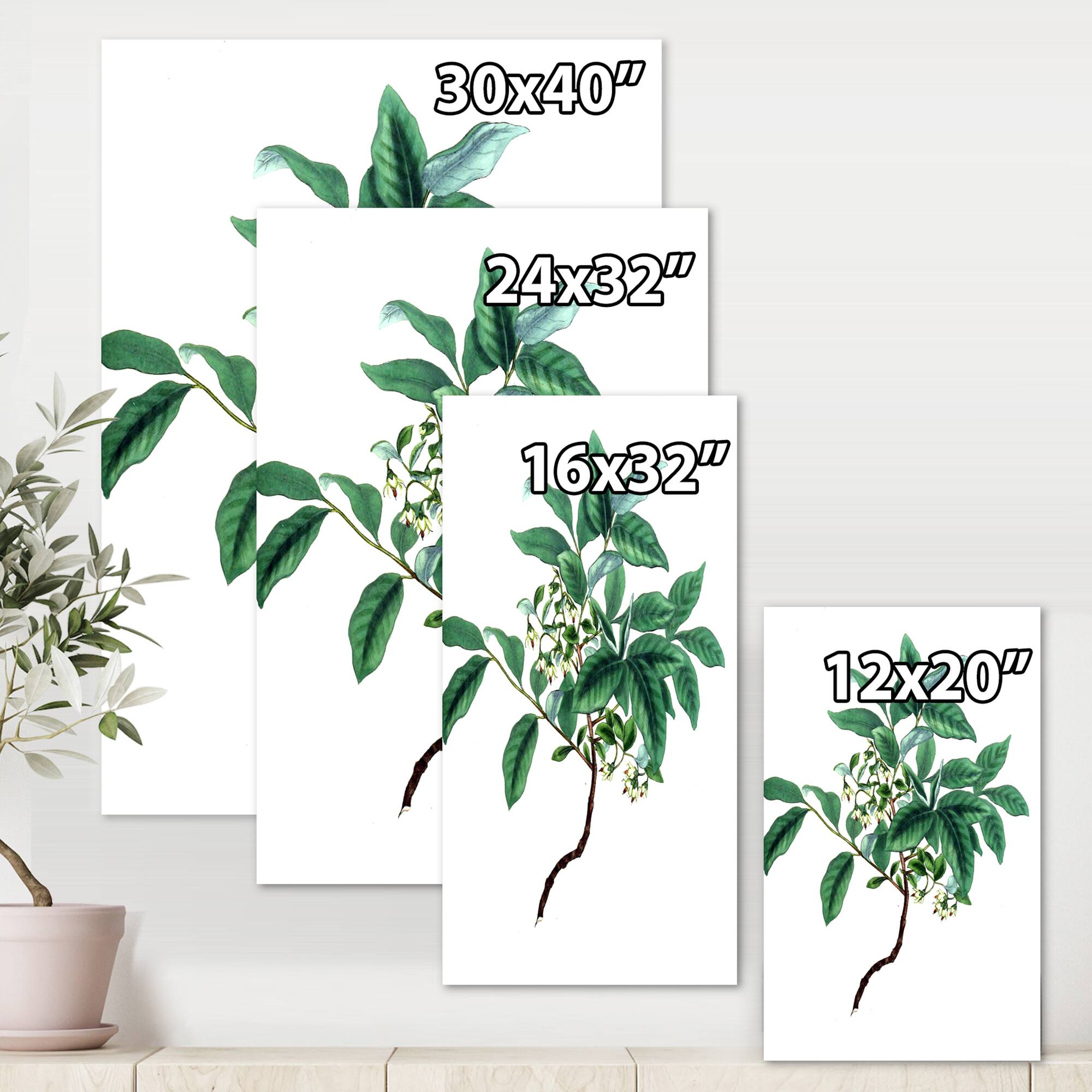 Designart - Vintage Green Leaves Plants IV - Traditional Canvas Wall Art Print