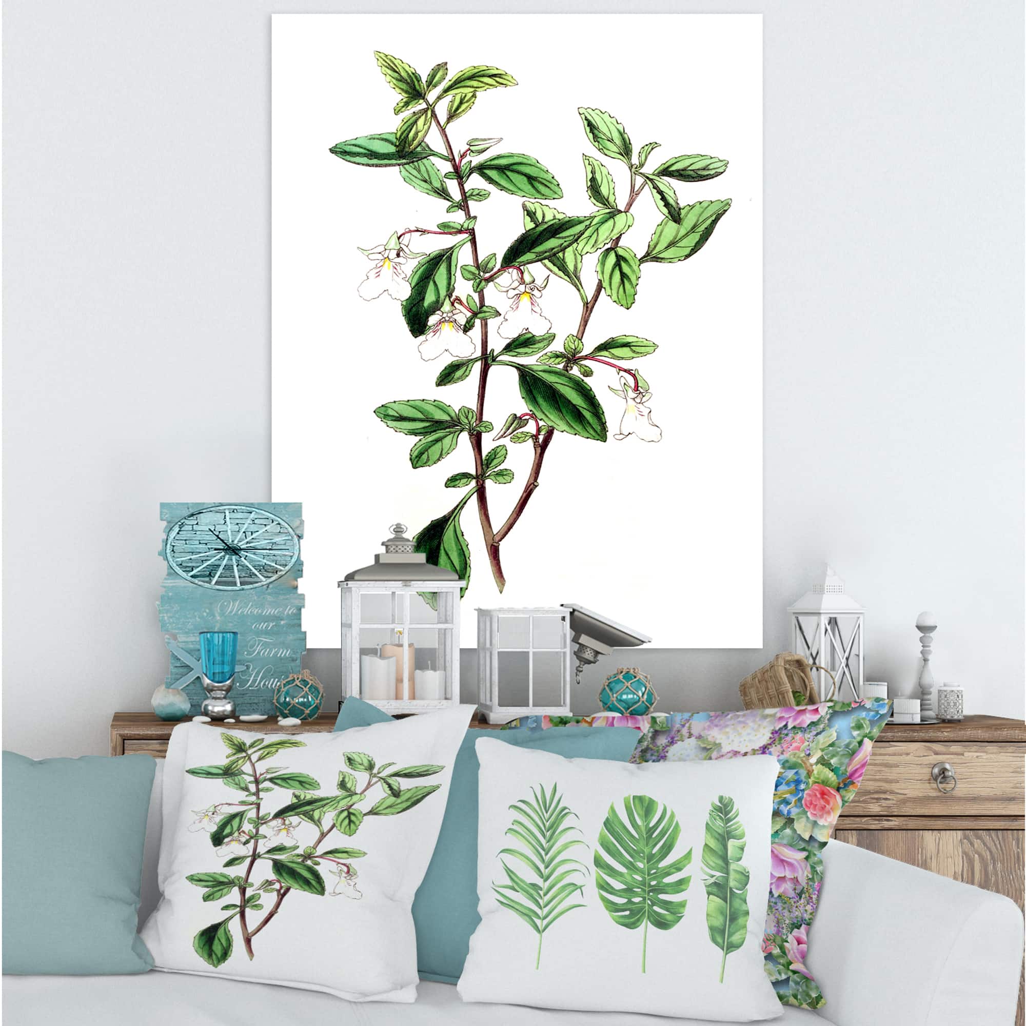 Designart - Vintage Green Leaves Plants VII - Traditional Canvas Wall Art Print