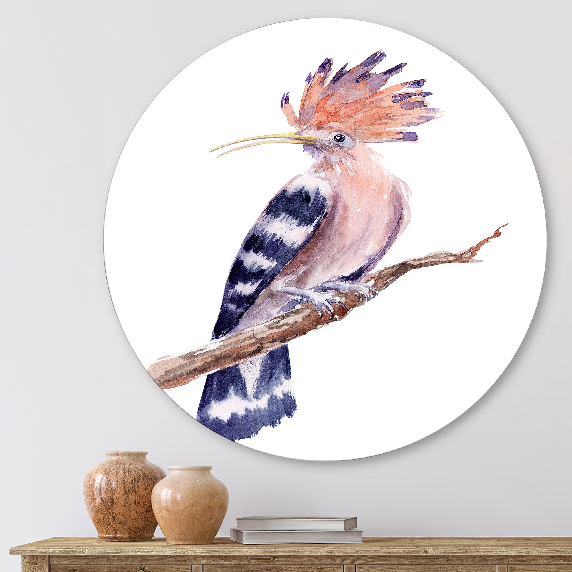 Designart - Vintage Hoopoe Bird On A Branch - Traditional Metal Circle Wall Art