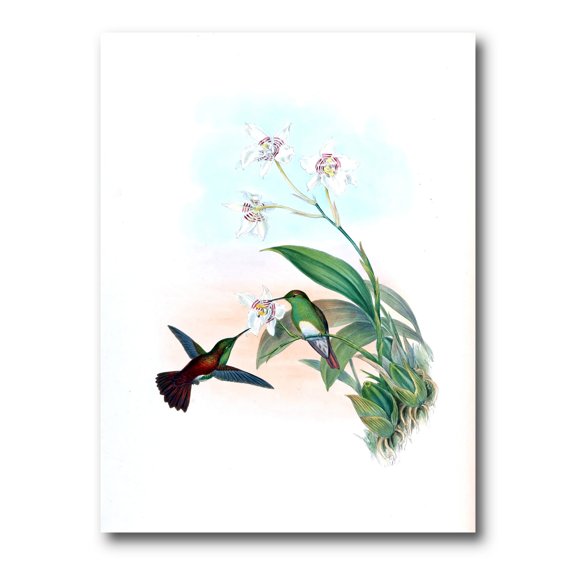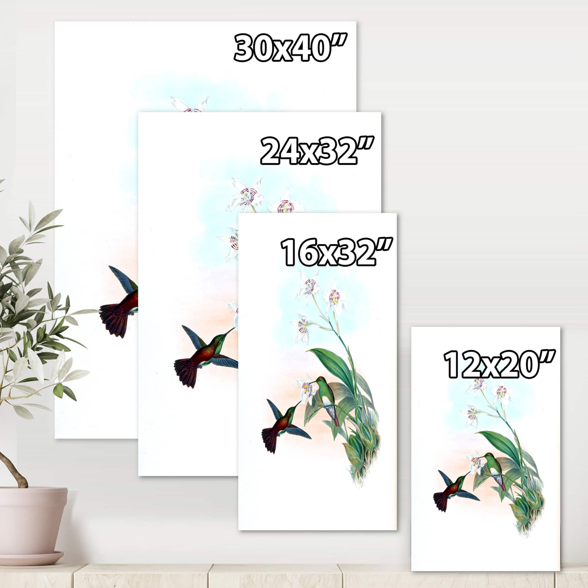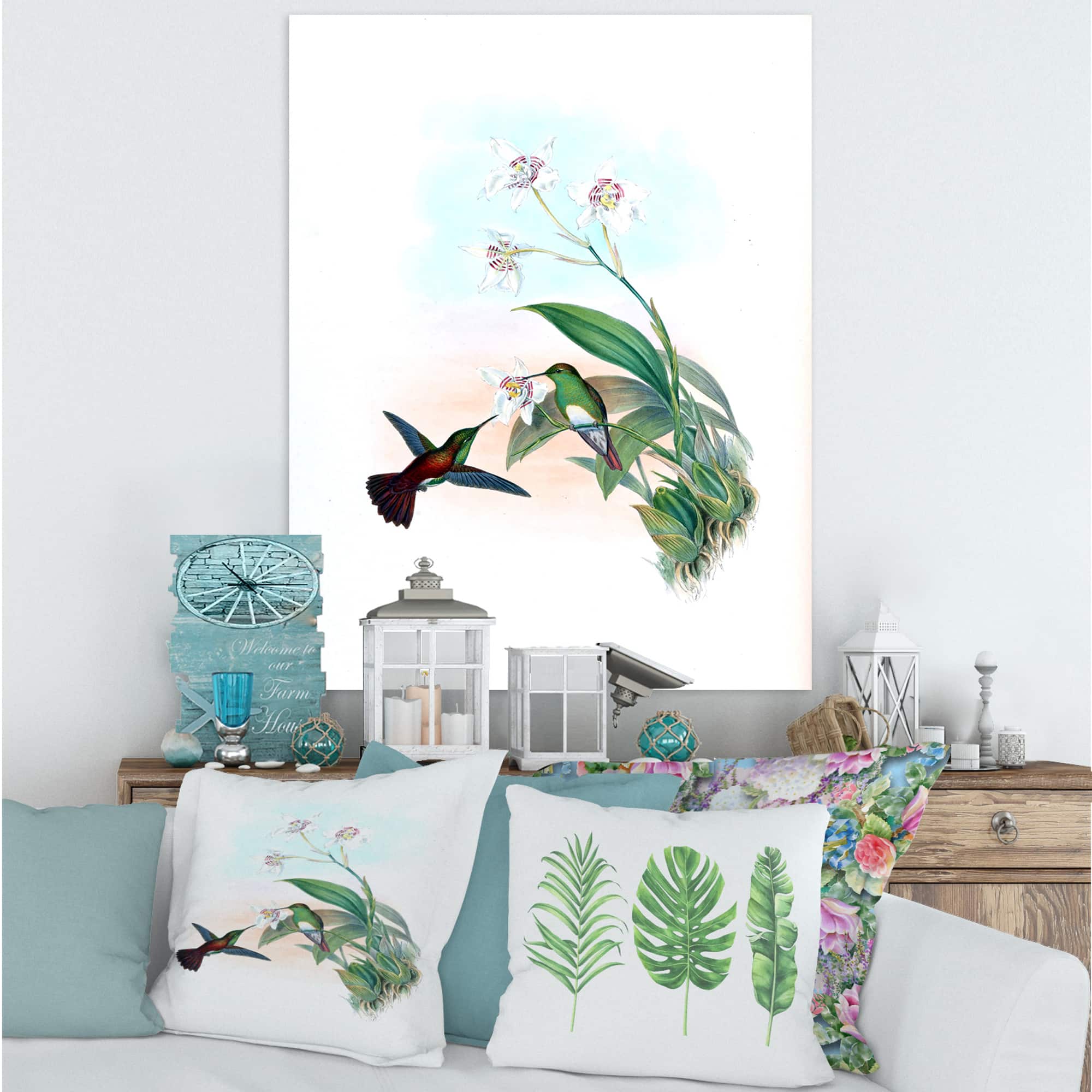 Designart - Vintage Hummingbird Flying To A Flower - Traditional Canvas Wall Art Print