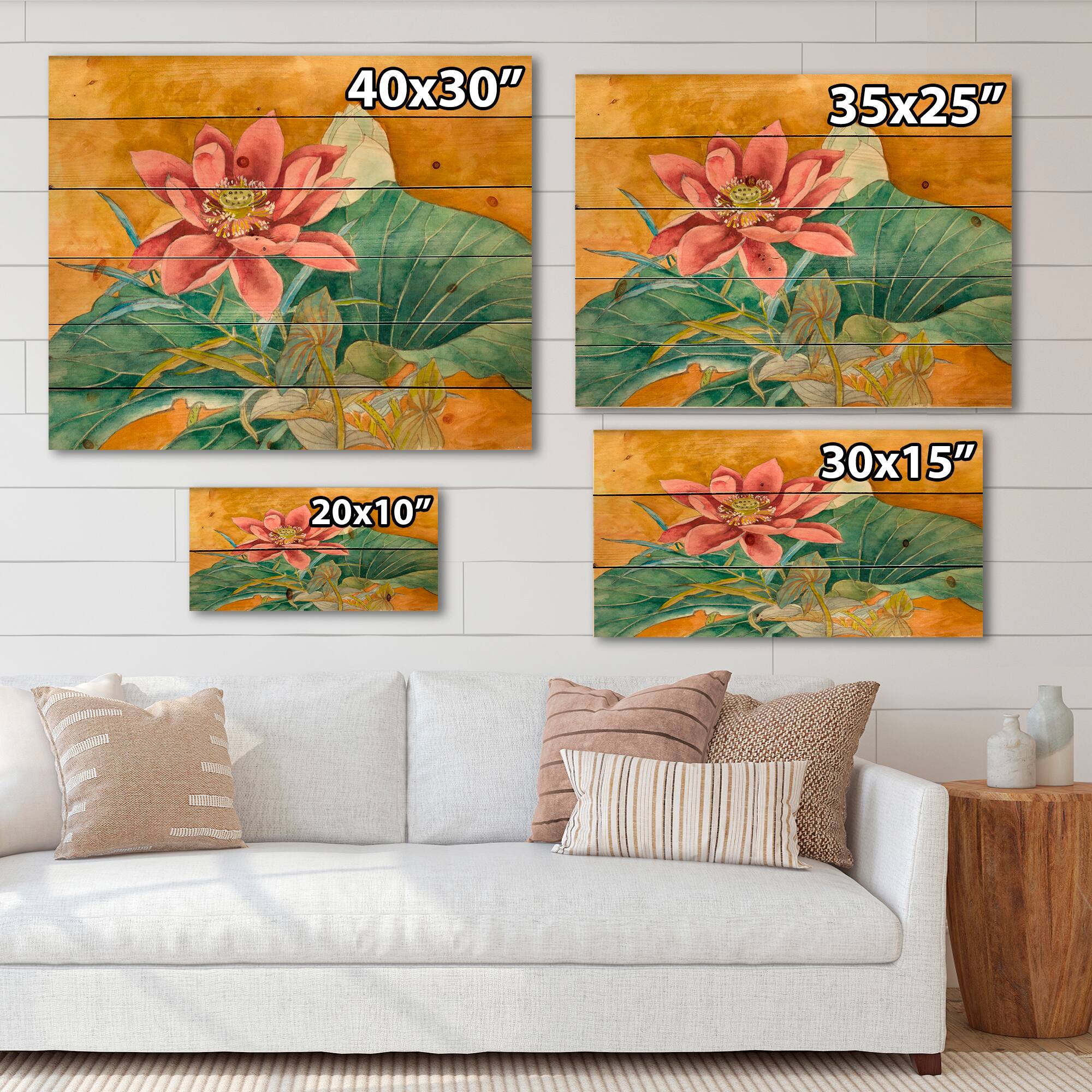Designart - Vintage Impression of Pink Lotus - Traditional Print on Natural Pine Wood