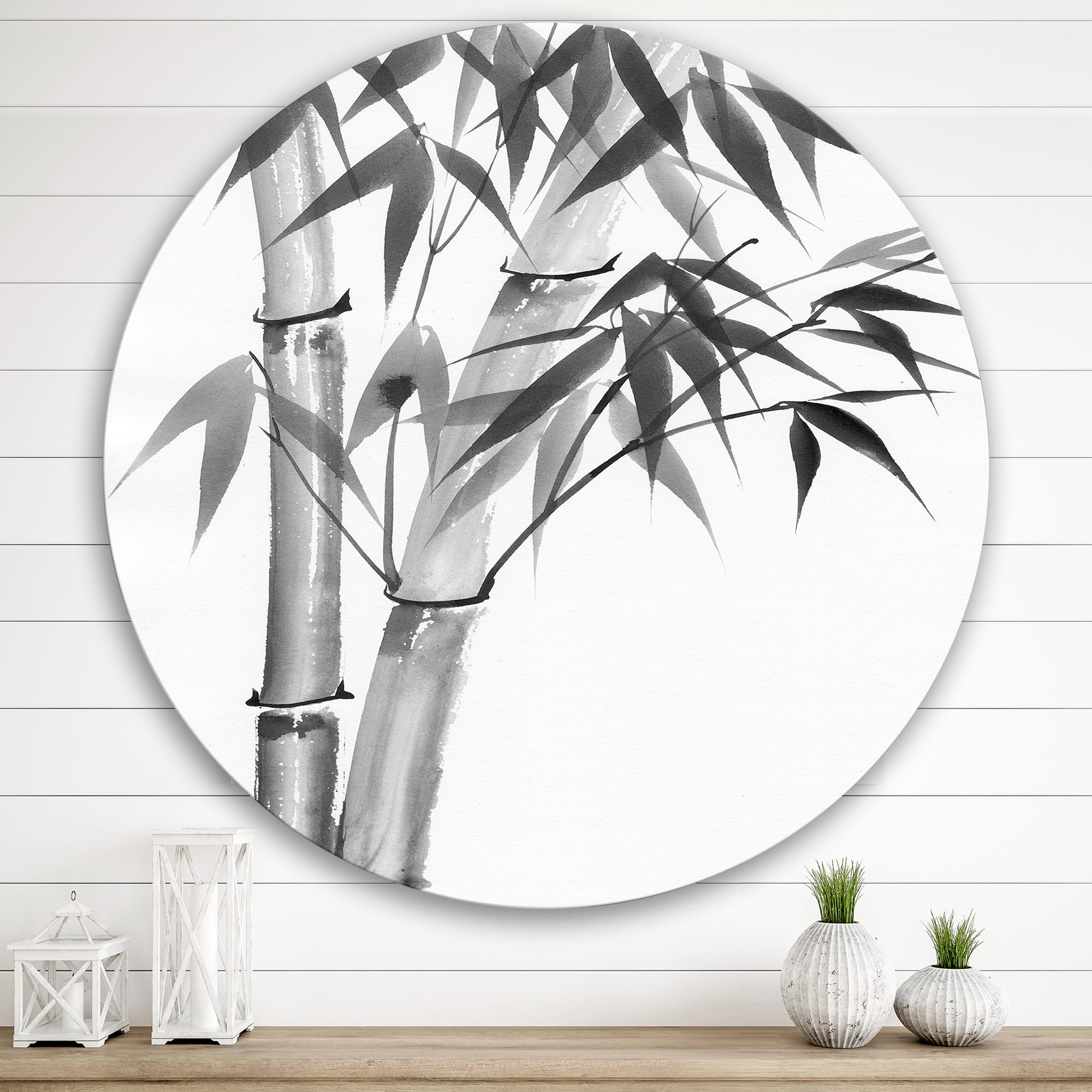 Designart - Vintage Monochrome Bamboo - Traditional Metal Circle Wall Art