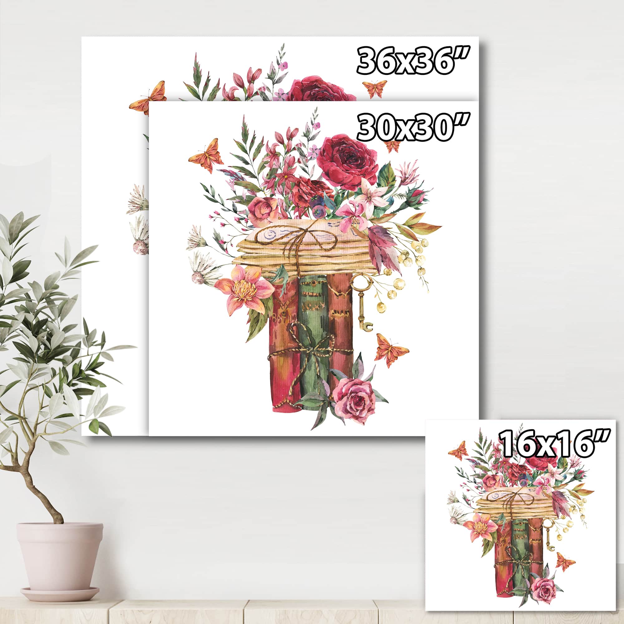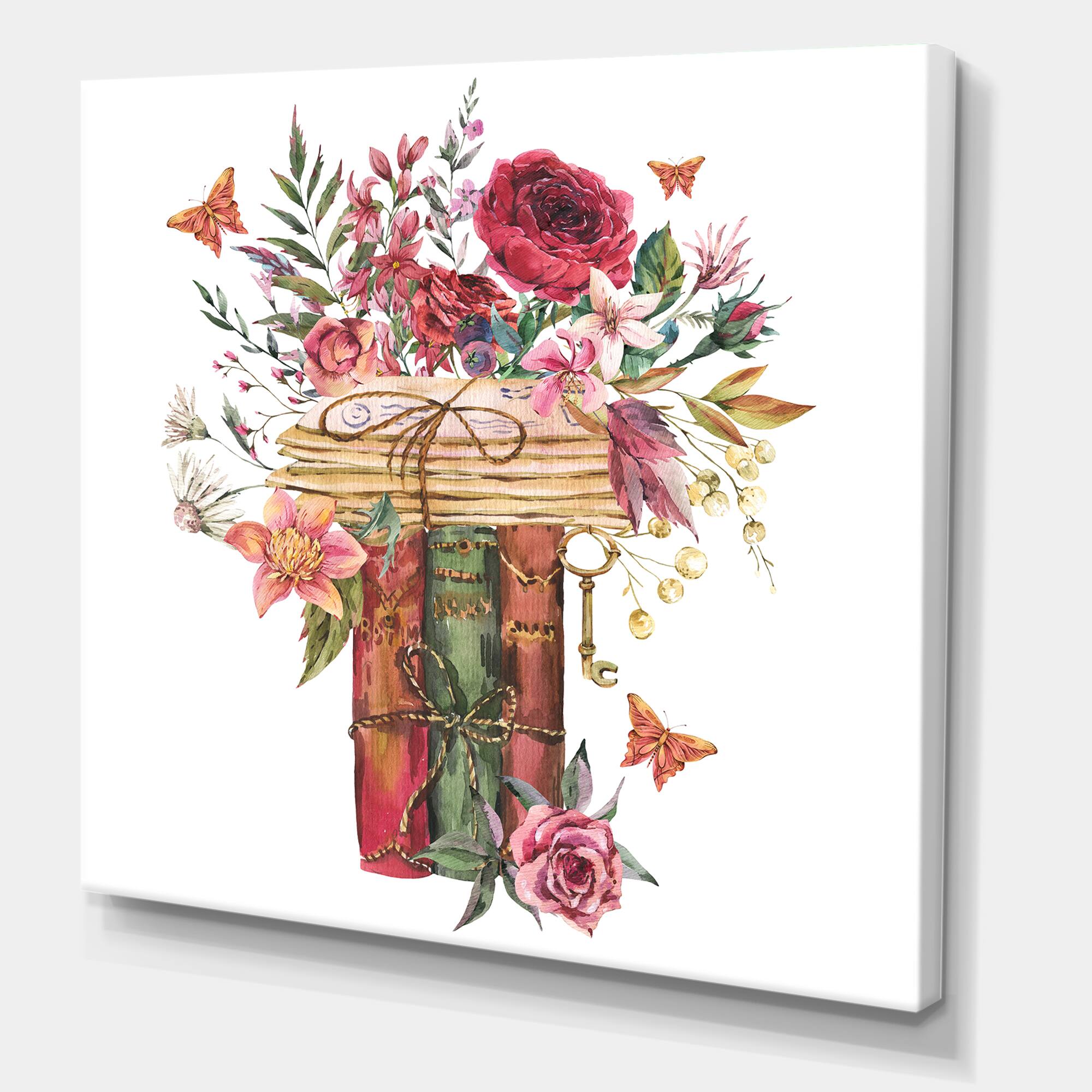 Designart - Vintage Old Books With Wildflowers - Farmhouse Canvas Wall Art Print