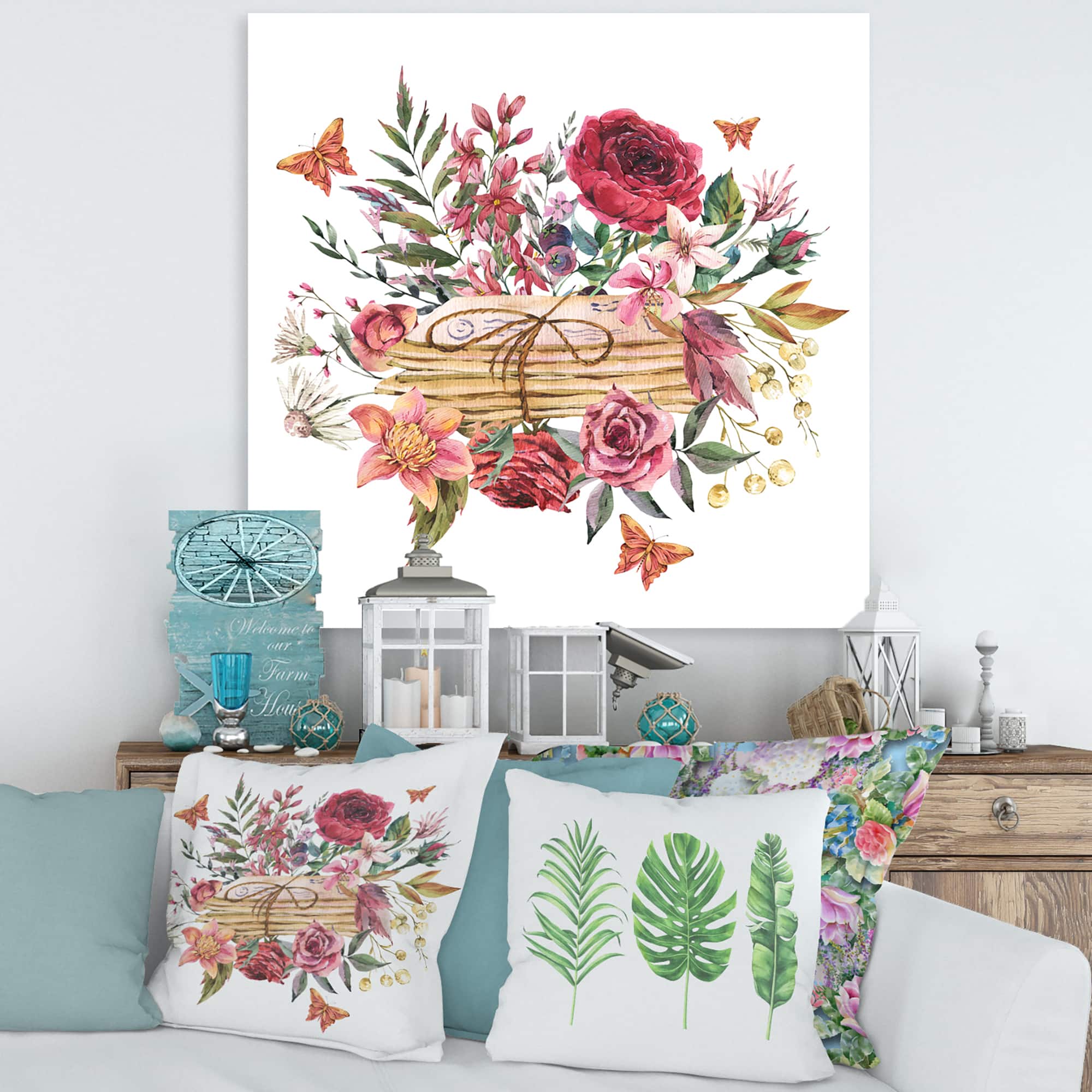 Designart - Vintage Old Letters With Wildflowers - Farmhouse Canvas Wall Art Print
