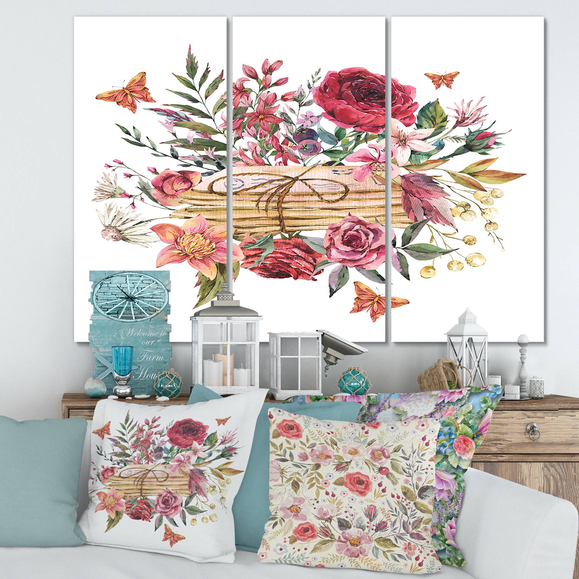 Designart - Vintage Old Letters With Wildflowers - Farmhouse Canvas Wall Art Print
