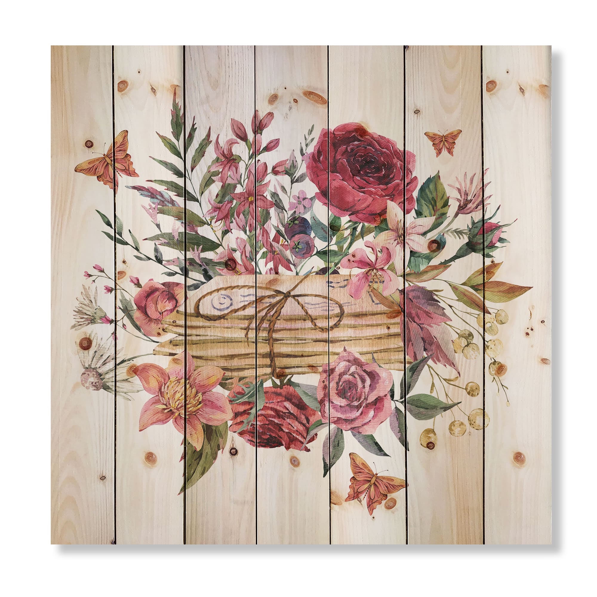Designart - Vintage Old Letters With Wildflowers - Farmhouse Print on Natural Pine Wood