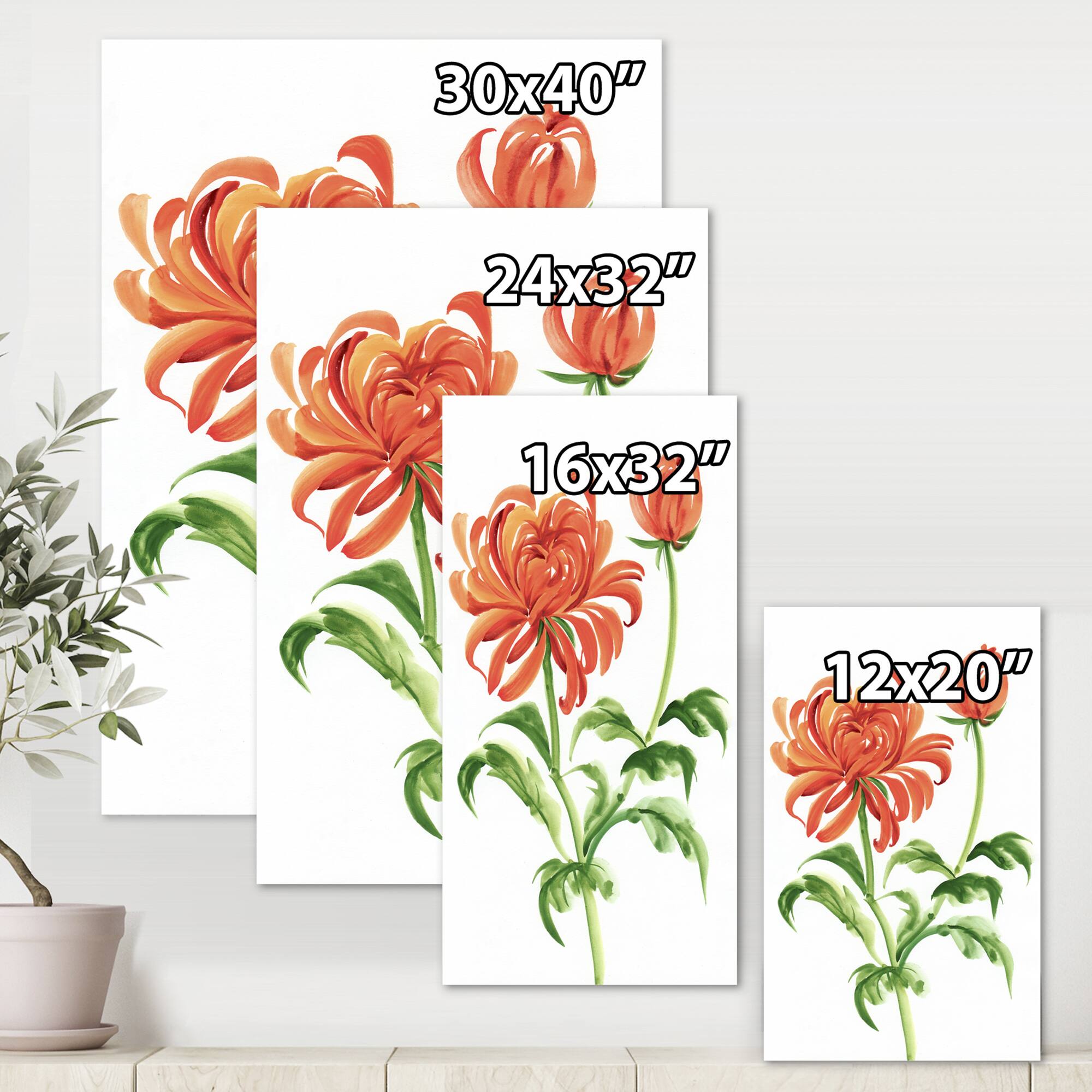 Designart - Vintage Orange Chrysanthemum Flower - Traditional Canvas Wall Art Print