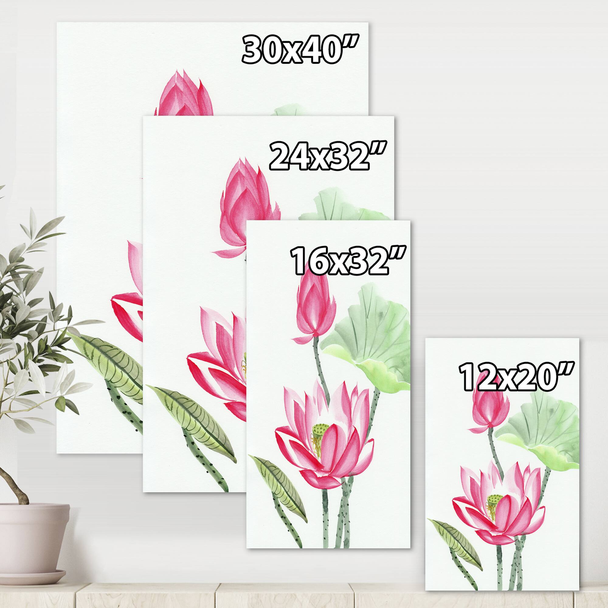 Designart - Vintage Pink Lotus Flower - Traditional Canvas Wall Art Print