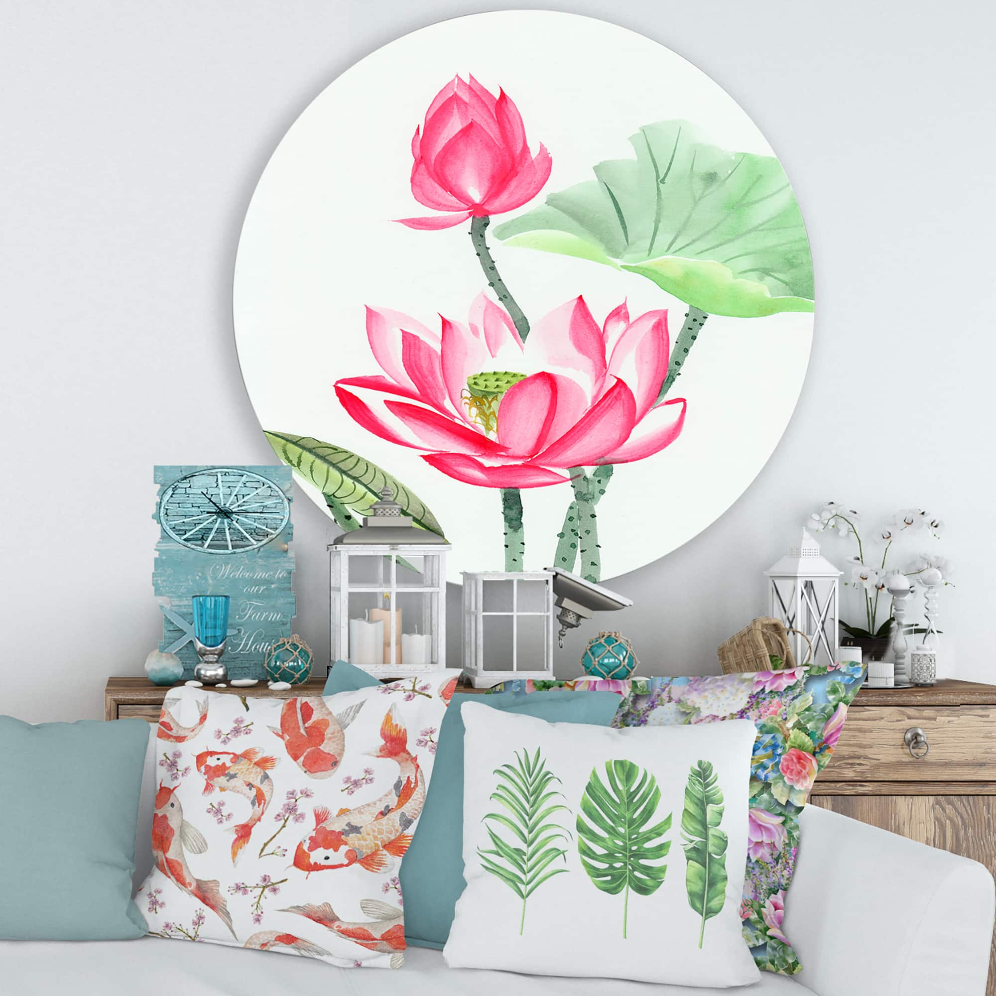 Designart - Vintage Pink Lotus Flower - Traditional Metal Circle Wall Art